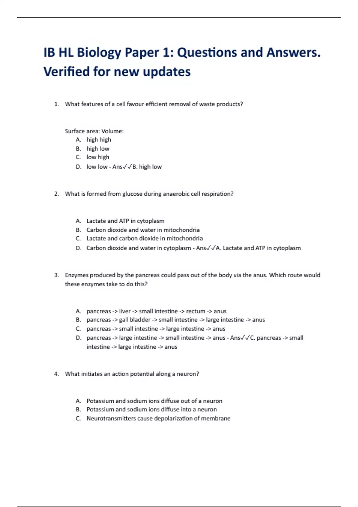 IB HL Biology Paper 1: Questions and Answers. Verified for new updates