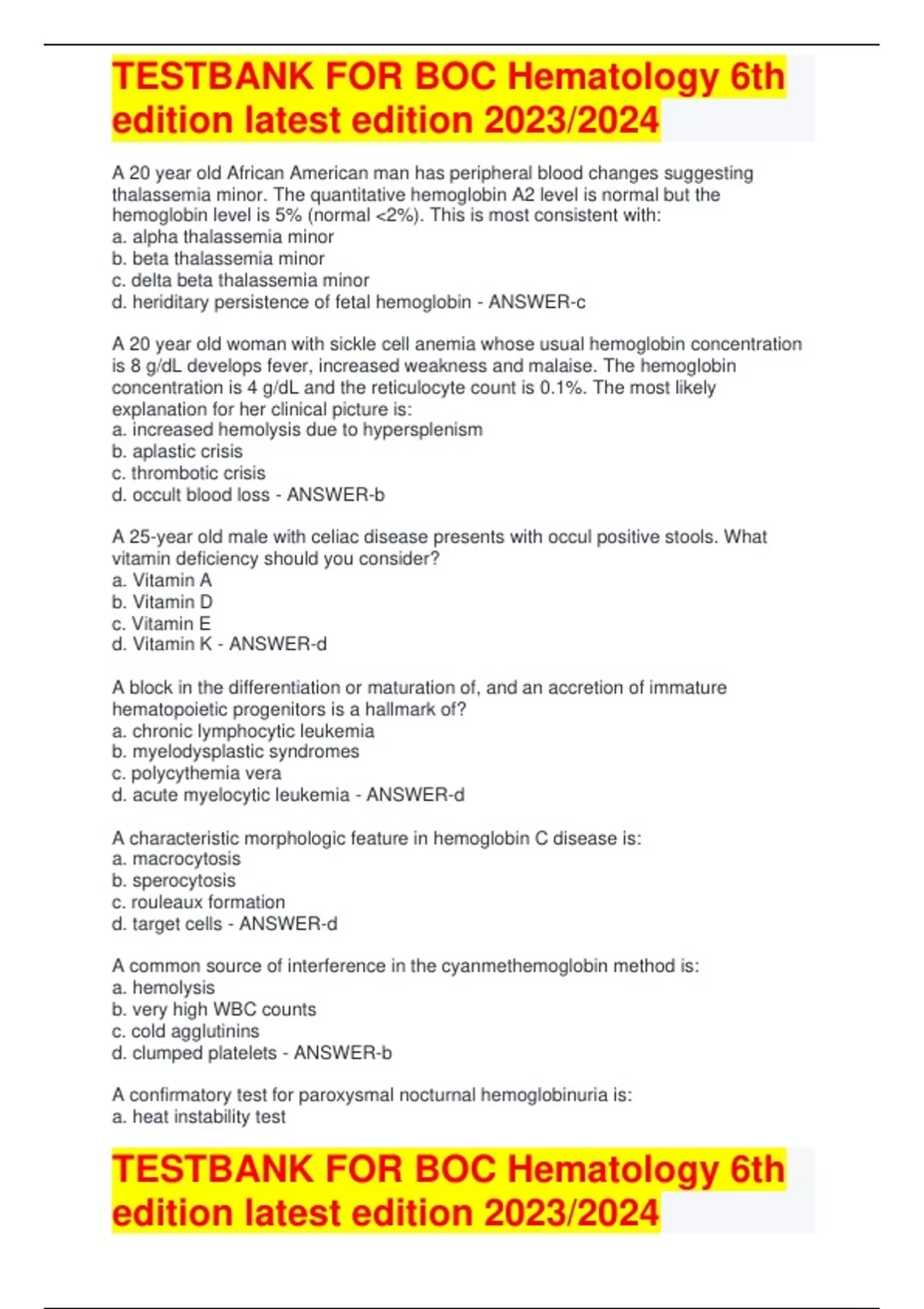 TESTBANK FOR BOC Hematology 6th edition latest edition 2023/2024TESTBANK FOR BOC Hematology 6th edition latest edition 2023/2024TESTBANK FOR BOC Hematology 6th edition latest edition 2023/2024