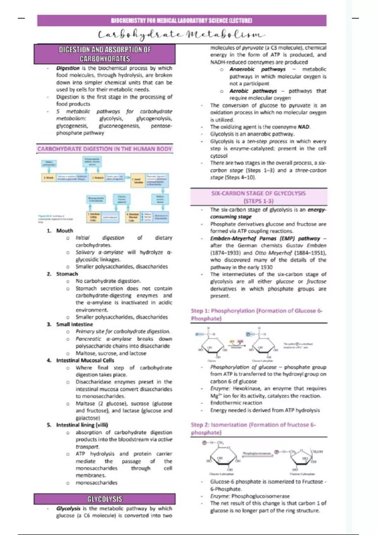 Summary Carbohydrate metabolism