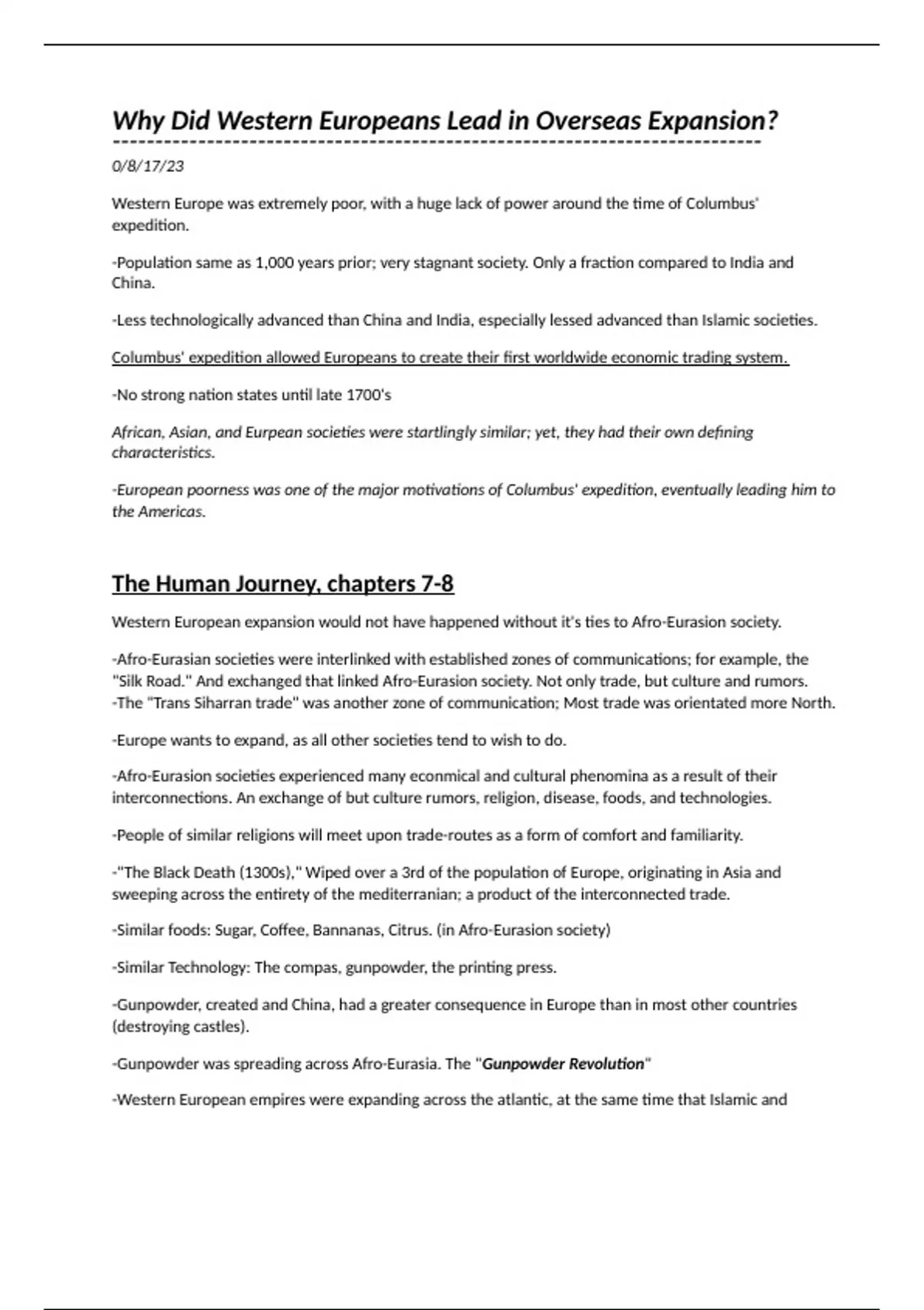 Just a large compilation of notes I took for my History of the Modern World course! It's a bit jumbled, and some stuff isn't covered as thoroughly as I'd like, but I hope it helps you!