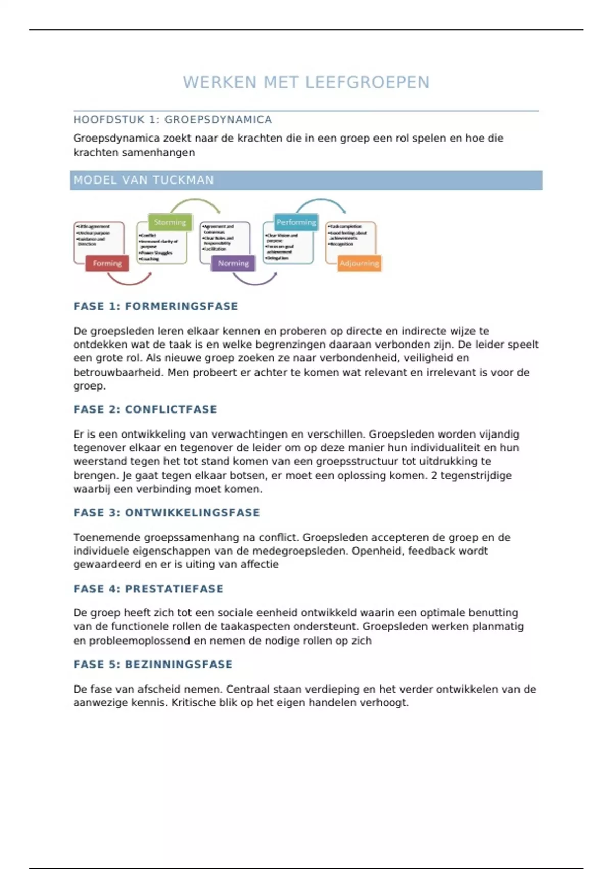 In deze 'korte' samenvatting staan de hoofdlijnen van het vak werken met leefgroepen. puur het theoretische dat je moet kennen om het toe te passen in een casus.