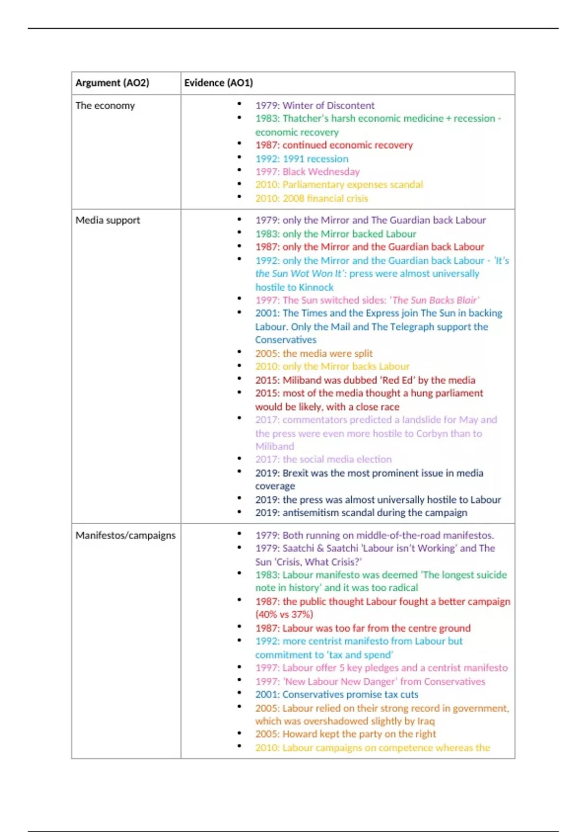 Argument (AO2) Evidence (AO1)
