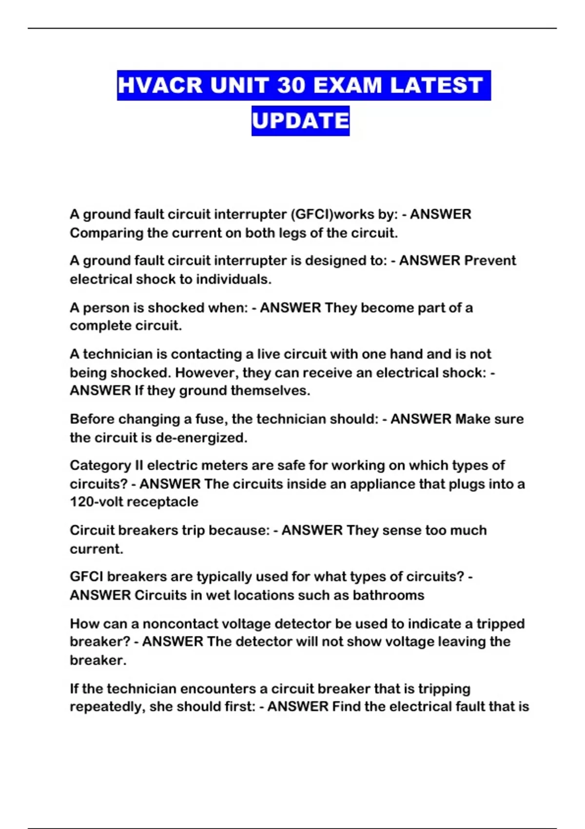 HVACR UNIT 30 EXAM LATEST UPDATE...