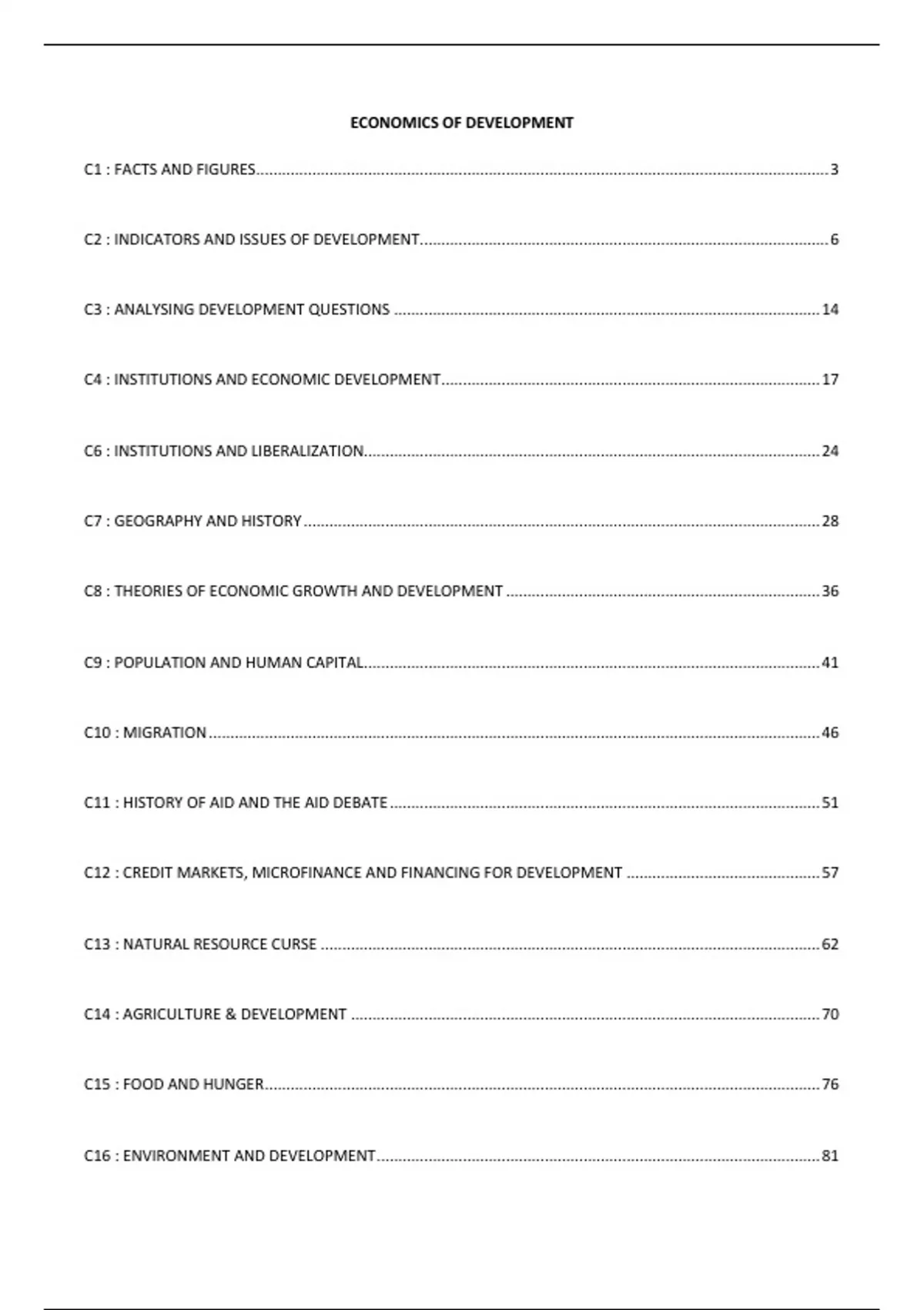 C8 : THEORIES OF ECONOMIC GROWTH AND DEVELOPMENT ......................................................................... 36