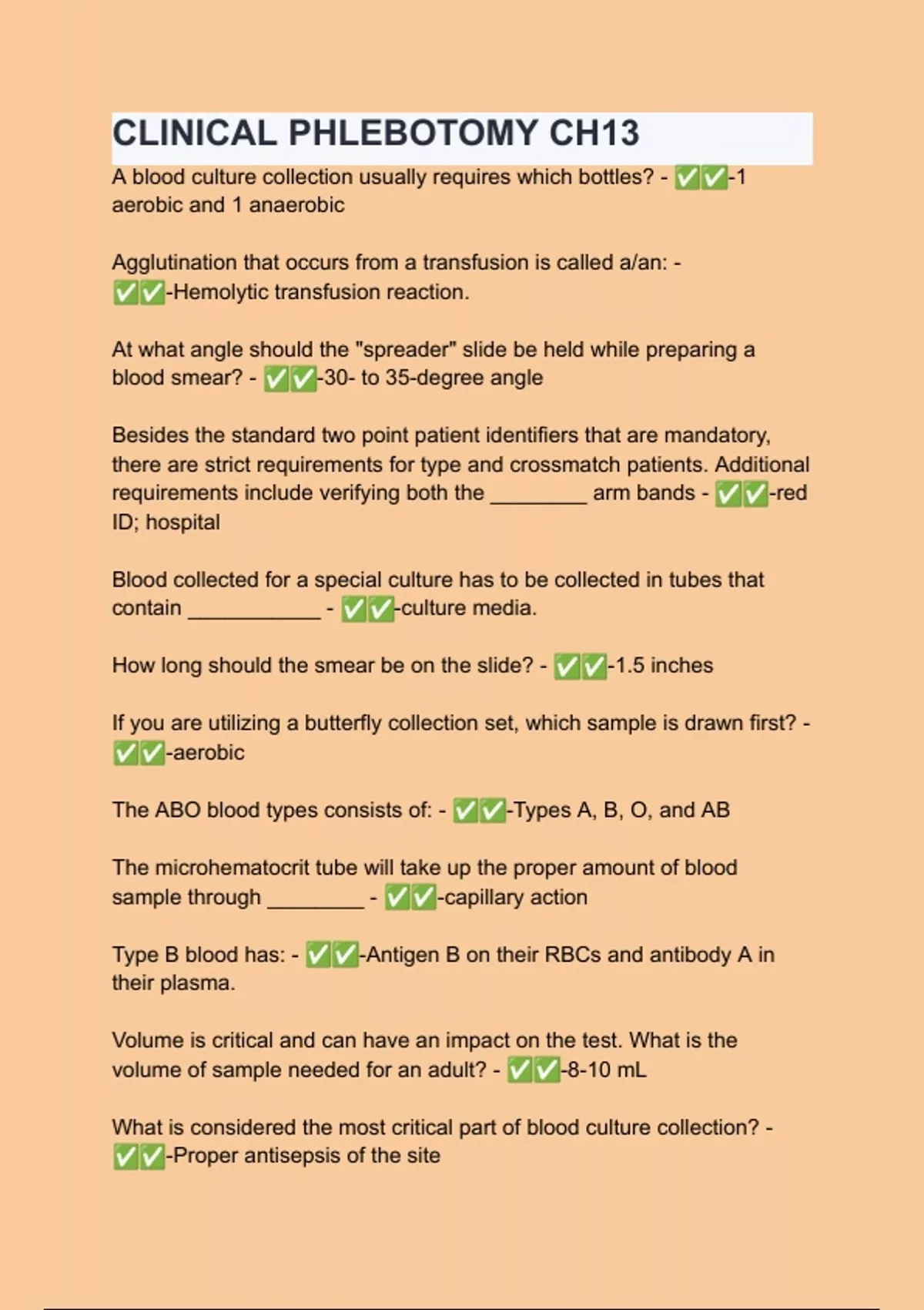 CLINICAL PHLEBOTOMY CH13 Questions with verified correct answers - complete solution 2024