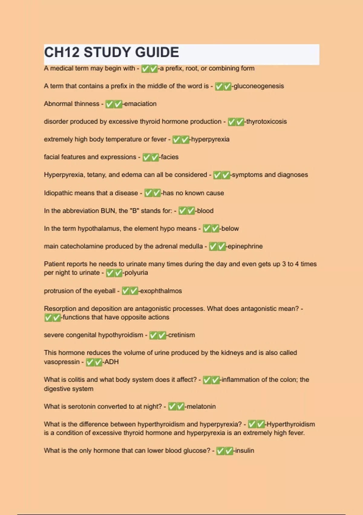 CH12 STUDY GUIDE Questions with verified correct answers - complete solution 2024.