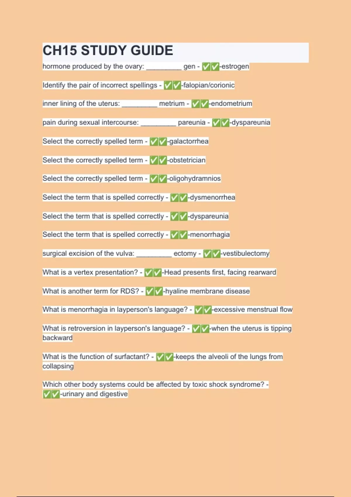 CH15 STUDY GUIDE Questions with verified correct answers - complete solution 2024.