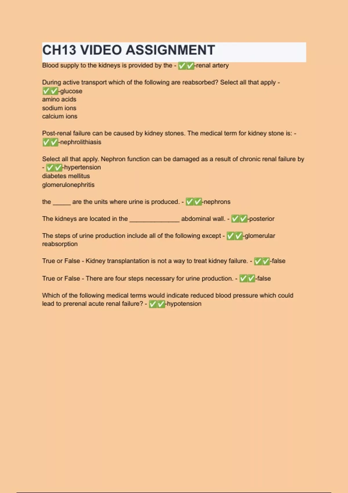CH13 VIDEO ASSIGNMENT Questions with verified correct answers - complete solution 2024
