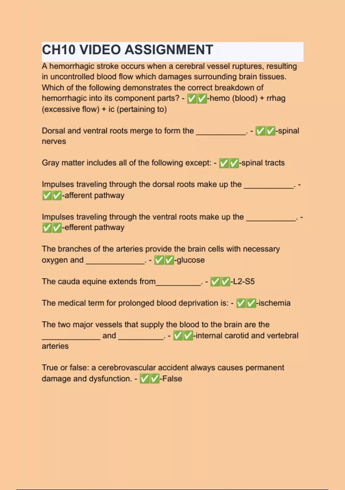 CH10 VIDEO ASSIGNMENT Questions with verified correct answers - complete solution 2024