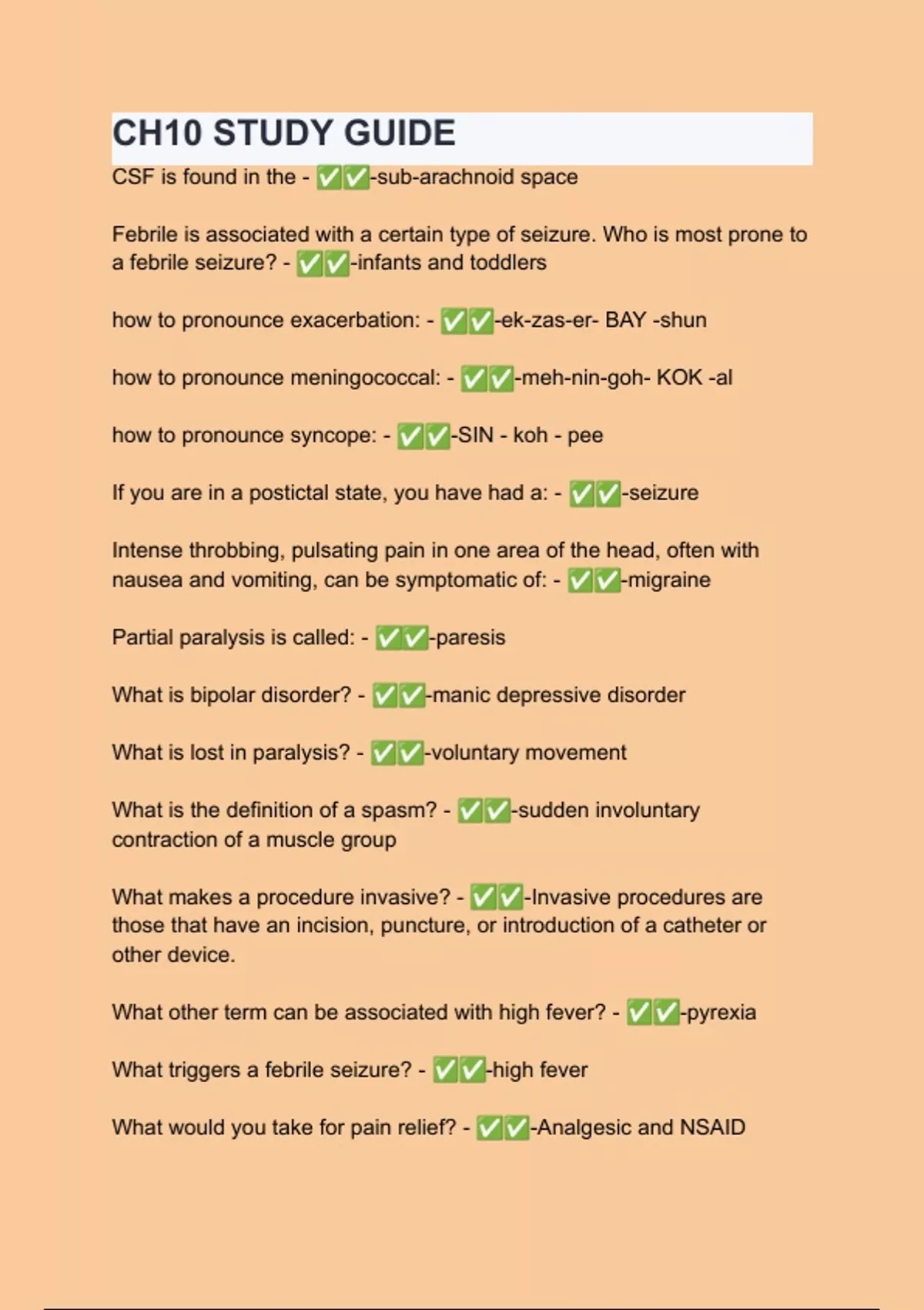 CH10 STUDY GUIDE Questions with verified correct answers - complete solution 2024