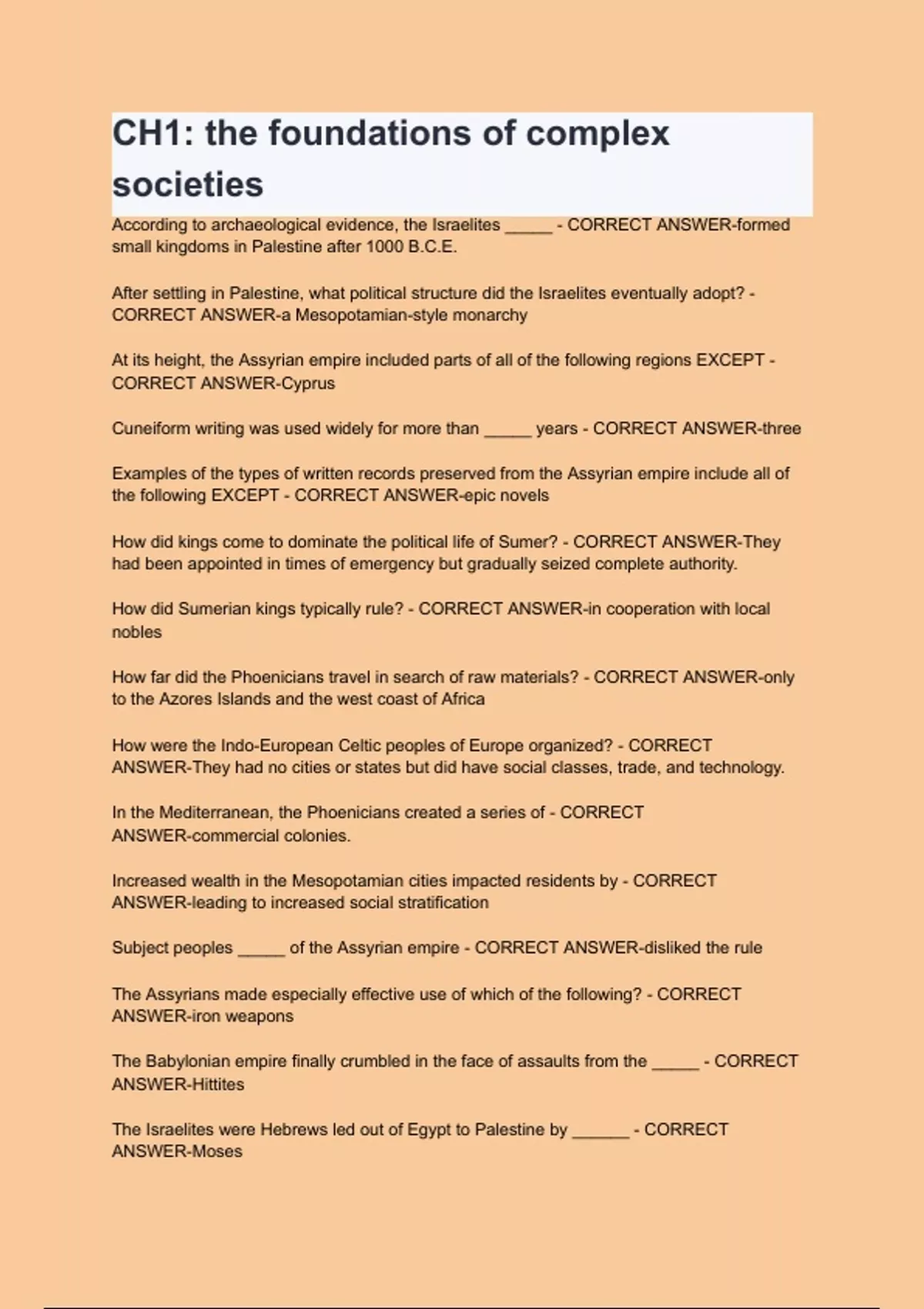 CH1_ the foundations of complex societies Questions with verified correct answers - complete solution