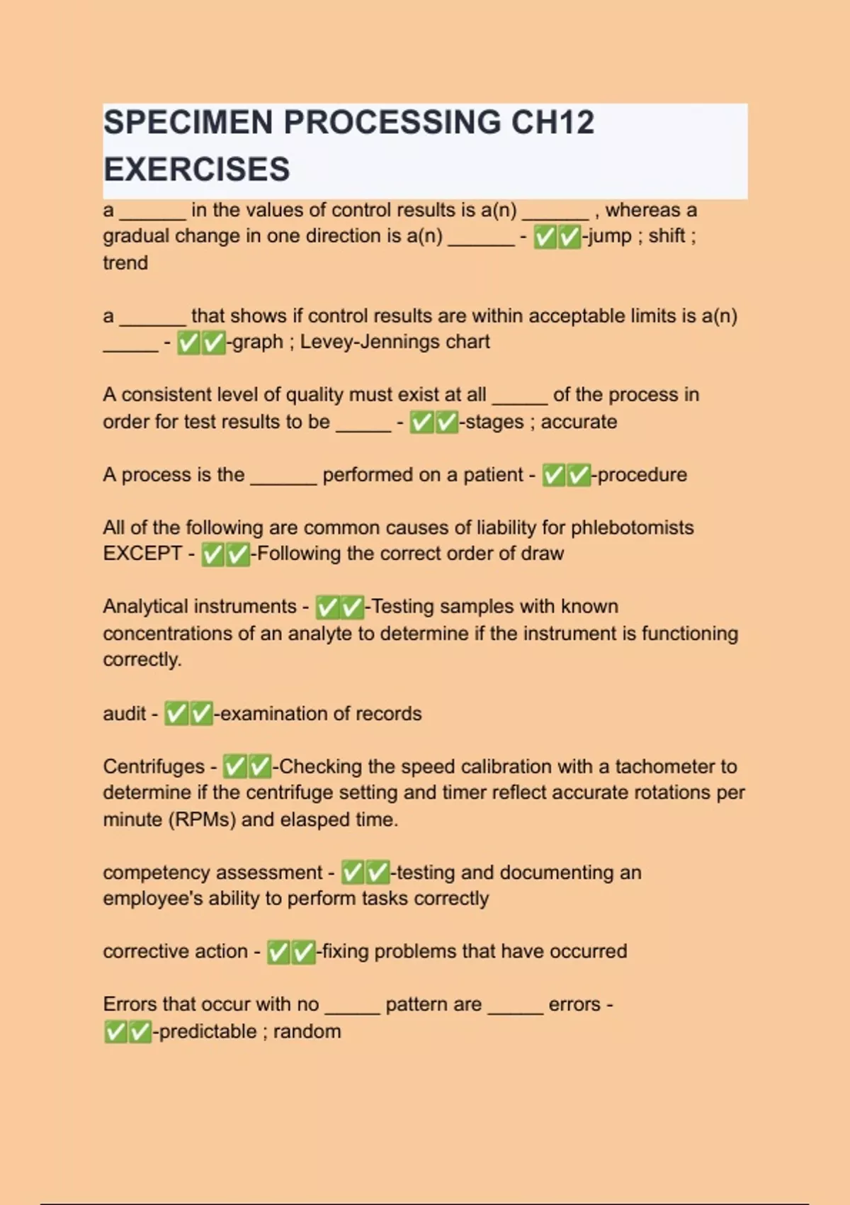 SPECIMEN PROCESSING CH12 EXERCISES Questions with verified correct answers - complete solution