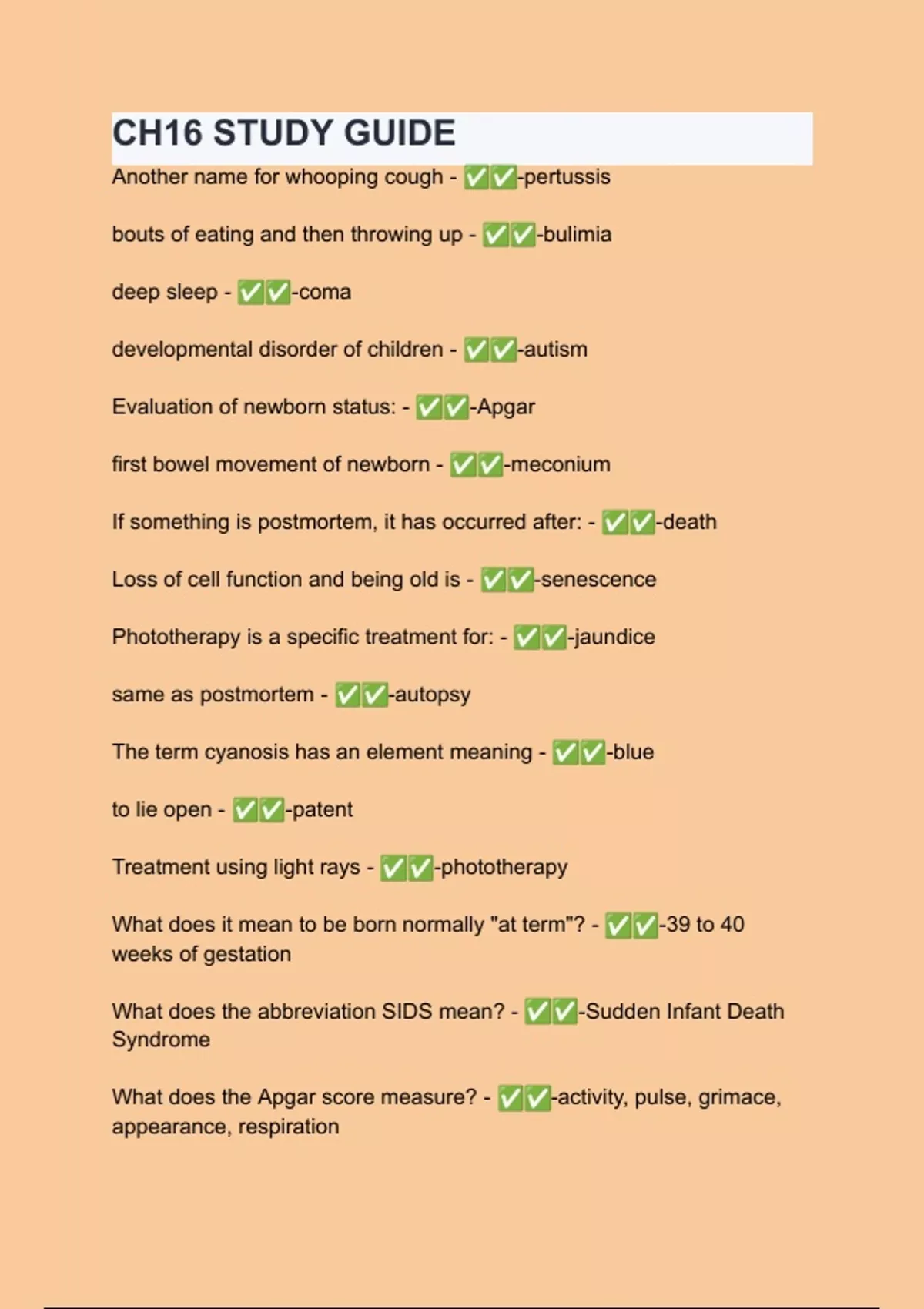 CH16 STUDY GUIDE Questions with verified correct answers - complete solution 2024