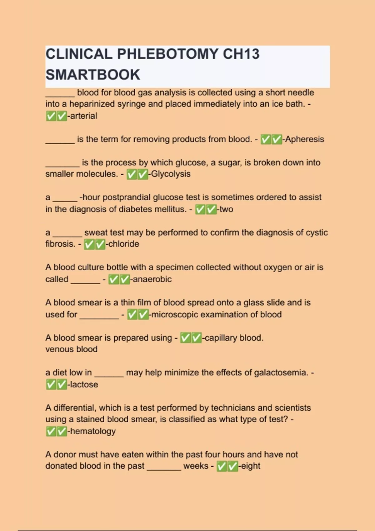 CLINICAL PHLEBOTOMY CH13 SMARTBOOK Questions with verified correct answers - complete
