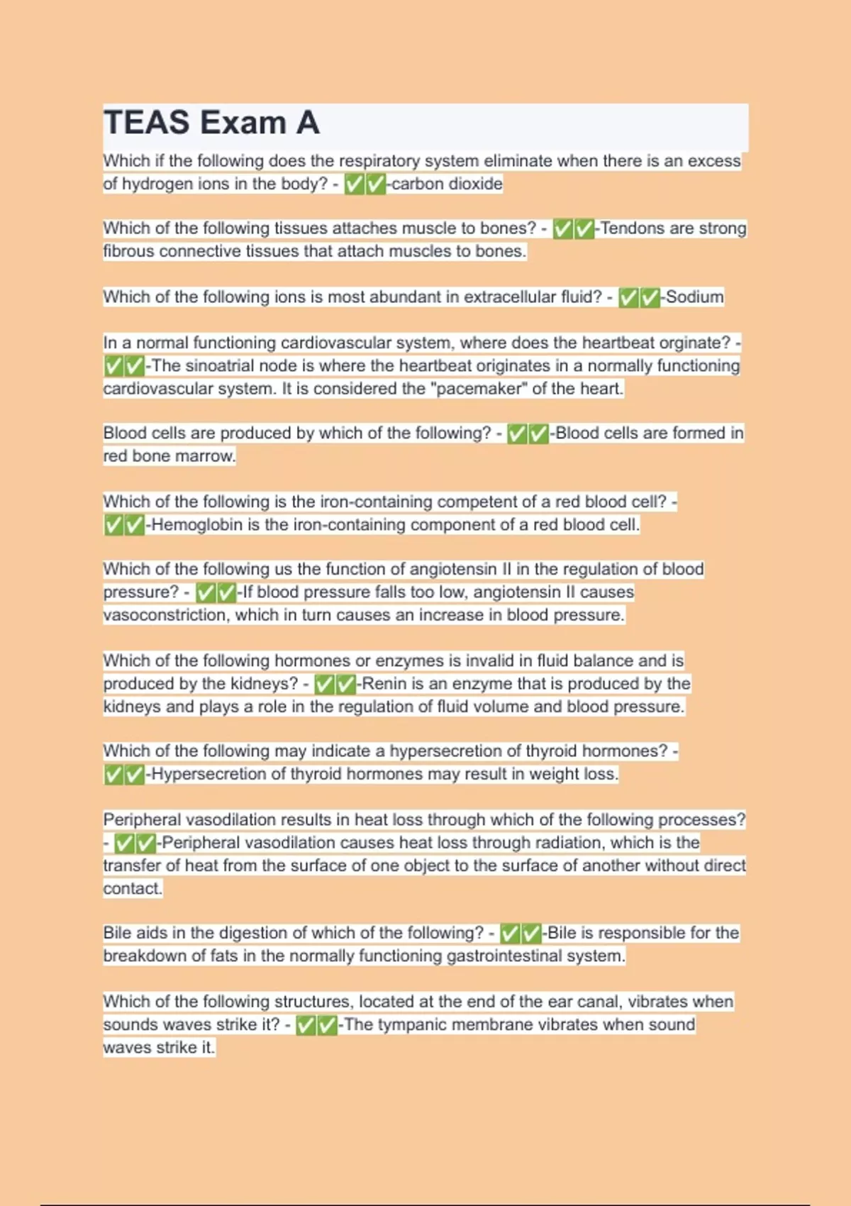 TEAS Exam A Questions with 100% correct answers verified latest update with Complete Actual Solution