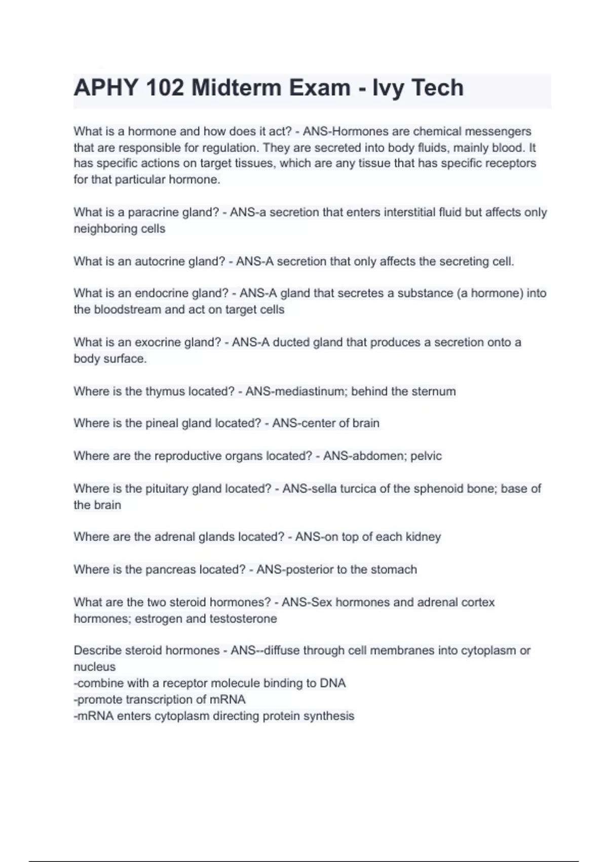 APHY 102 Midterm Exam - Ivy Tech with 100% correct answers | verified | latest update 2024