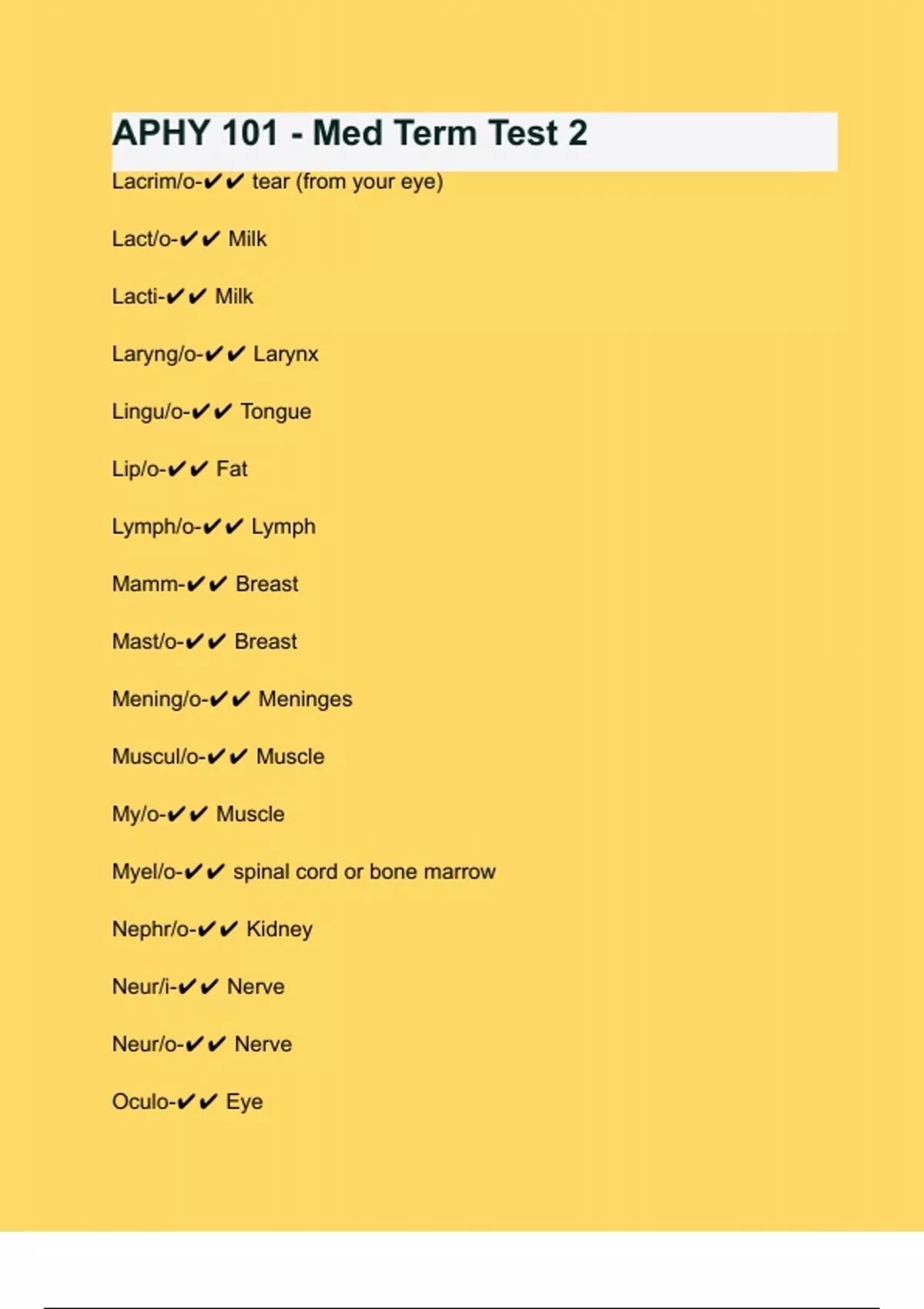Myel/o-✔✔ spinal cord or bone marrow