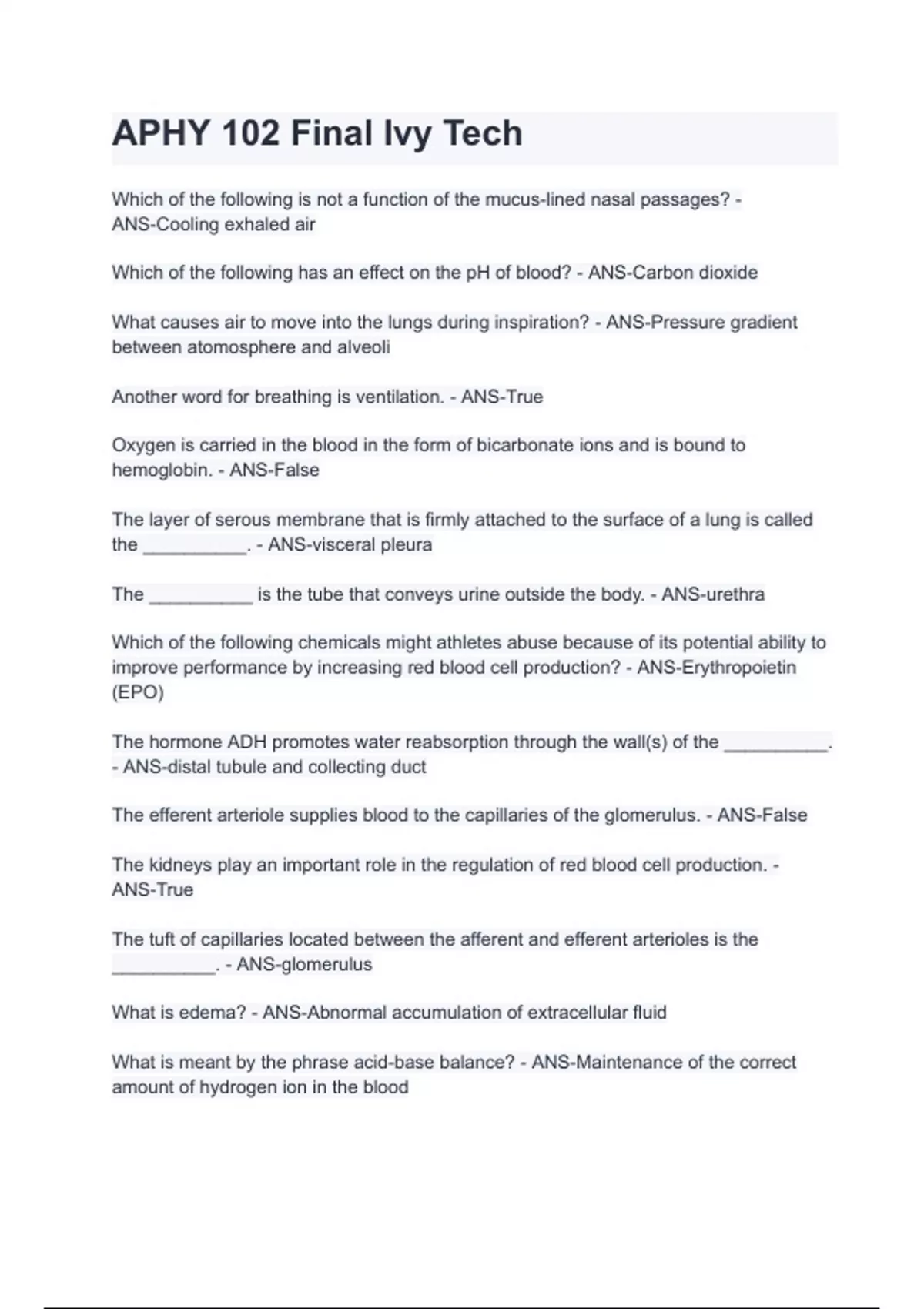 APHY 102 Final Ivy Tech