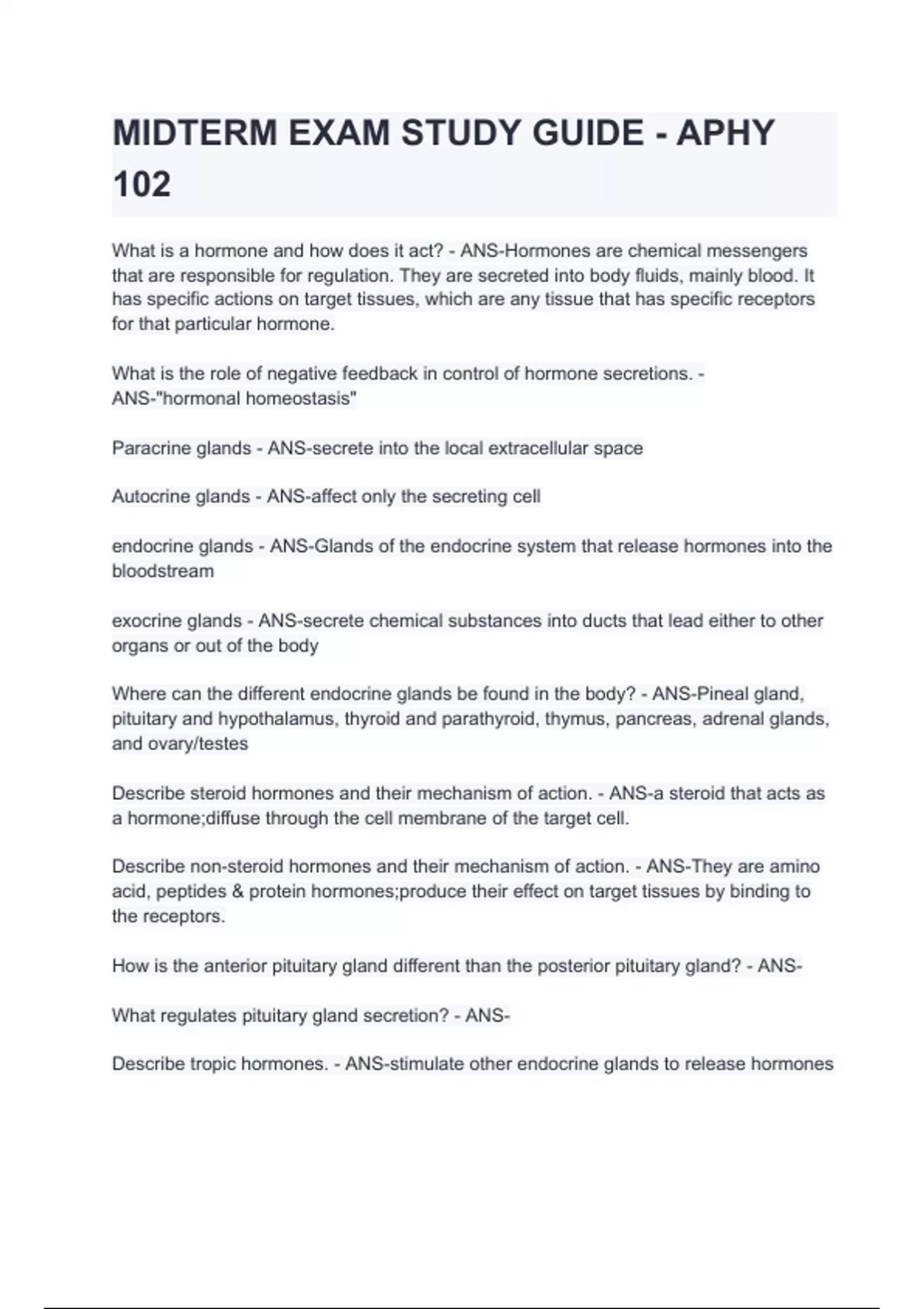 Describe tropic hormones. - ANS-stimulate other endocrine glands to release hormones
