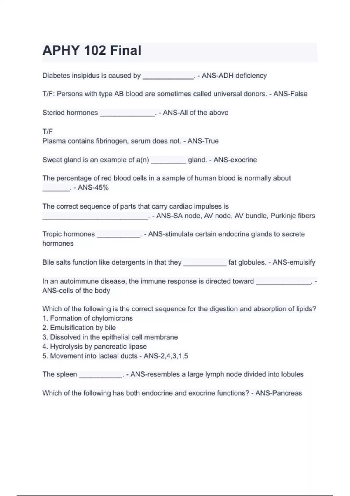 Which of the following has both endocrine and exocrine functions? - ANS-Pancreas