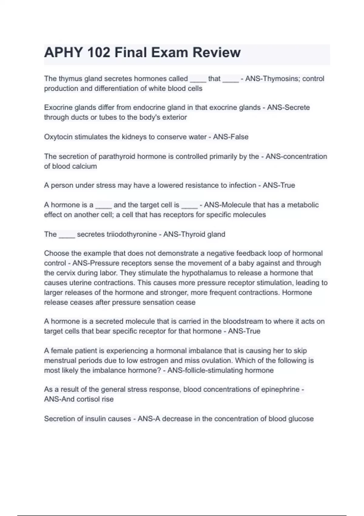 APHY 102 Final Exam Review with 100% correct answers | verified | latest update 2024