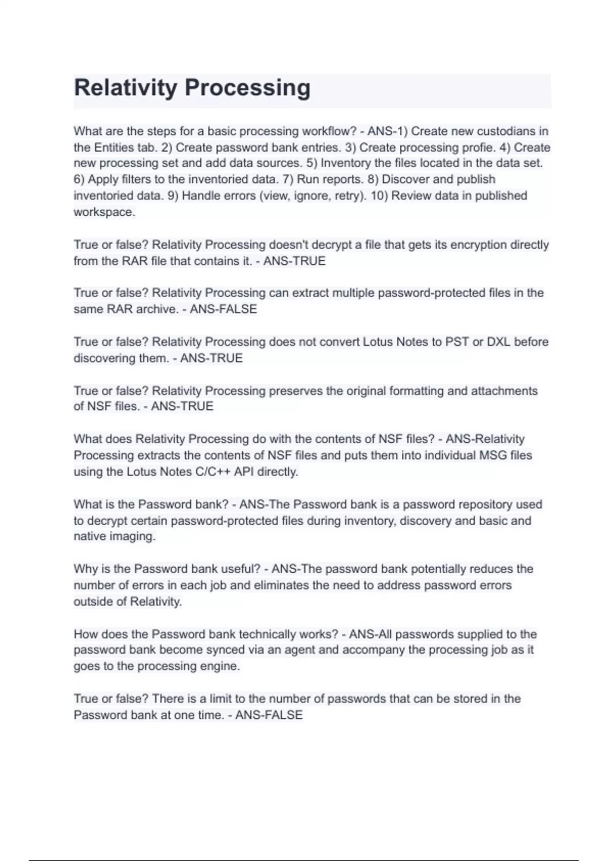 True or false? Relativity Processing can extract multiple password-protected files in the