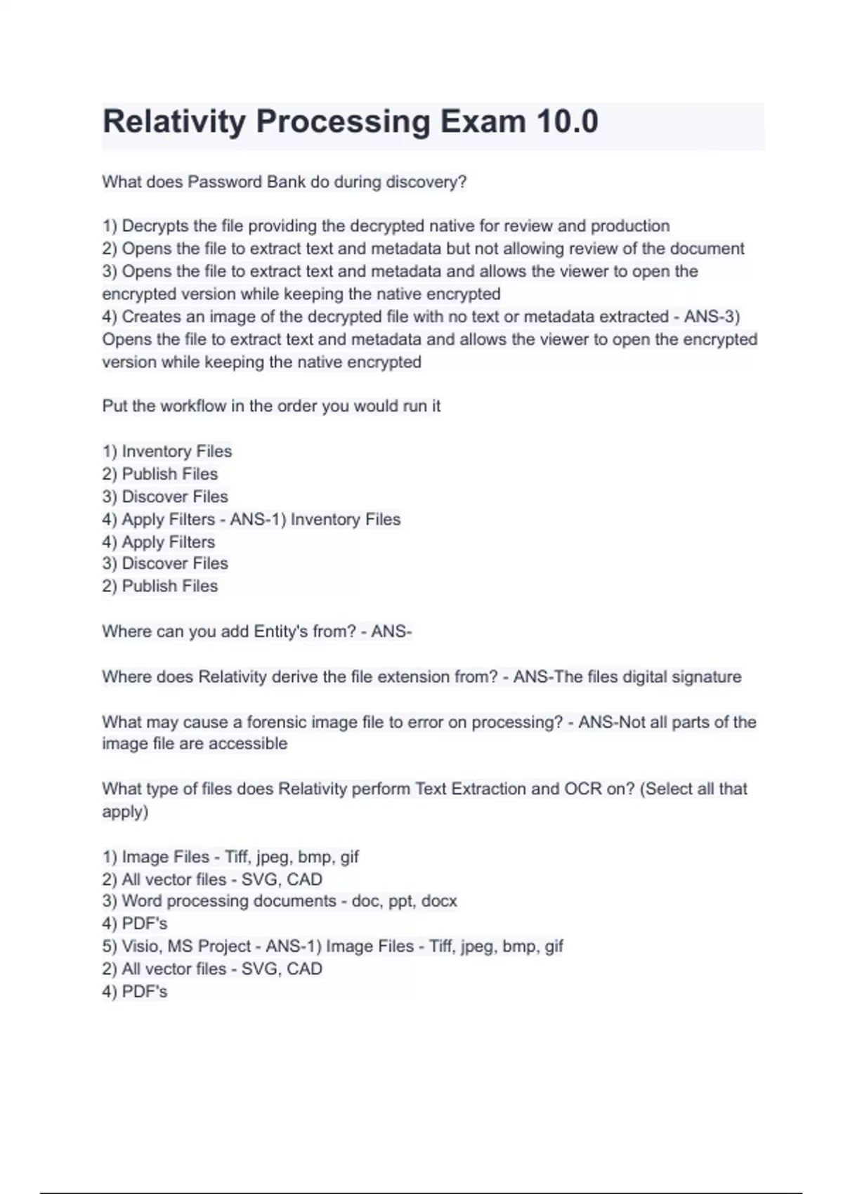 Relativity Processing Exam 10.0 Questions with 100% correct answers | verified | latest update 2024