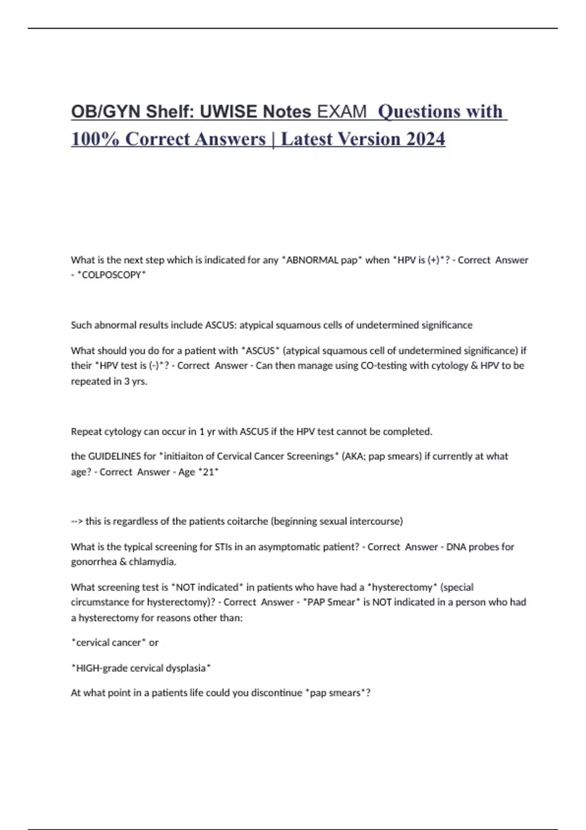 uWise OBGYN Questions with 100% Correct Answers Latest Version 2024 Expert Verified Ace the Test