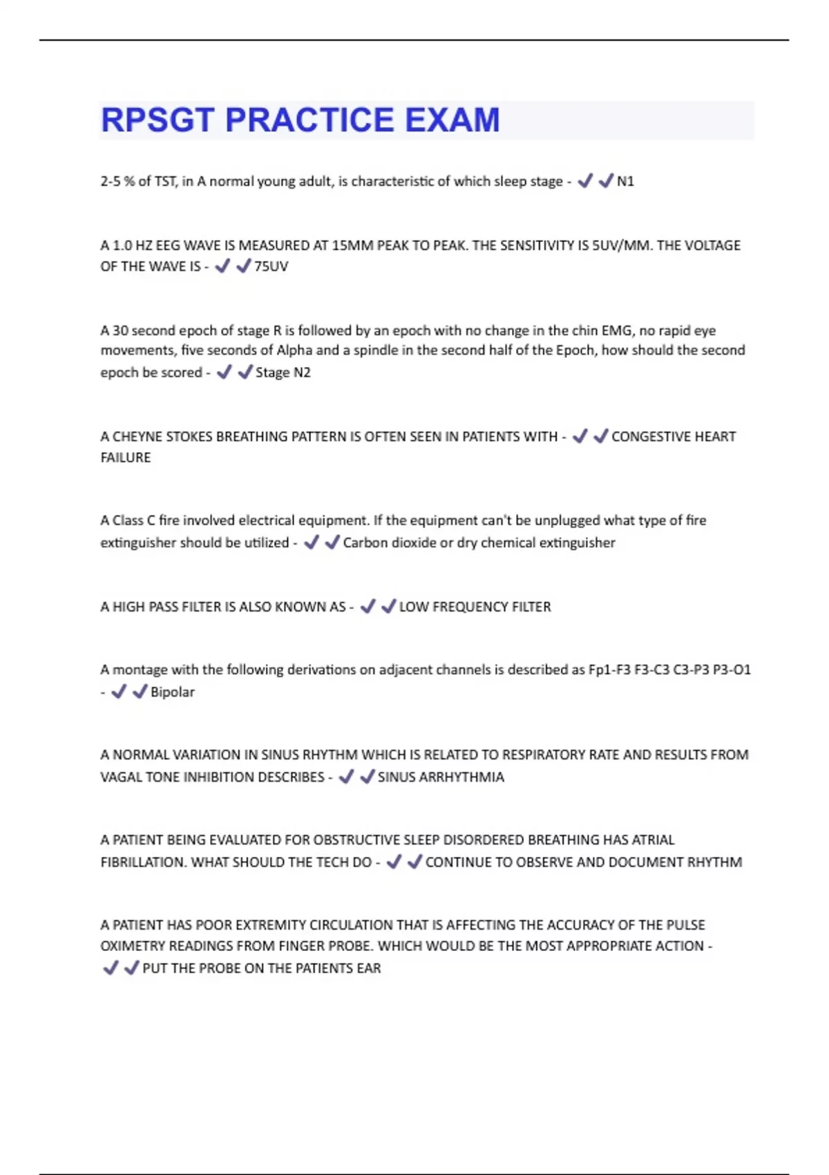 RPSGT PRACTICE EXAM QUESTIONS WITH COMPLETE SOLUTIONS GRADED A+