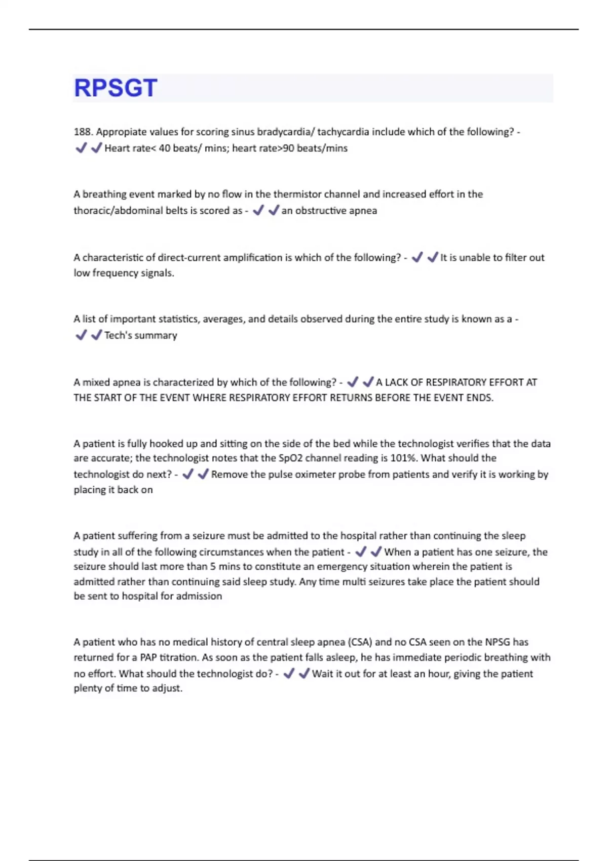 voltage activity is termed - trace alternant An artifact that results from salt bridges is most likely caused by________________________________ - incorrect measuring/ prepping too large an area / allowing tape or gauze from different lacations to make contact An example of a sleep technologist acclimating a patient to the testing room includes which of the following? - Explaining to the patient how to communicate with the technologist if assistance is needed An important factor in the digitization of a PSG is - an adequate sampeling rate