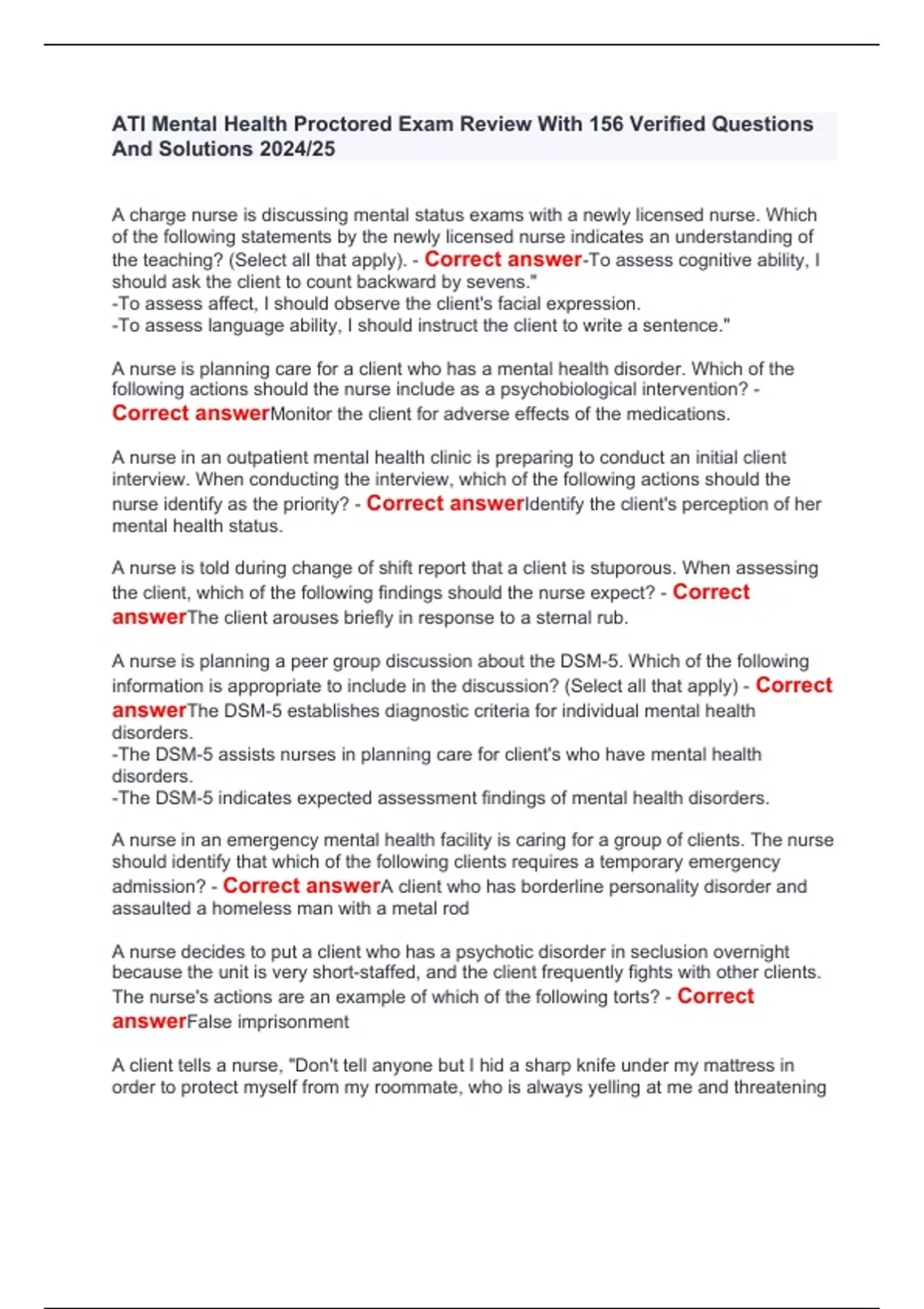 ATI Mental Health Proctored Exam Review With 156 Verified Questions And Solutions 2024/25ATI Mental Health Proctored Exam Review With 156 Verified Questions And Solutions 2024/25ATI Mental Health Proctored Exam Review With 156 Verified Questions And Solutions 2024/25