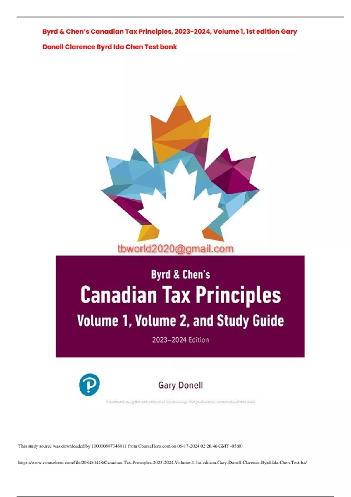 Byrd & Chen’s Canadian Tax Principles, , Volume 1, 1st edition Gary Donell Clarence Byrd Ida Chen Test bank