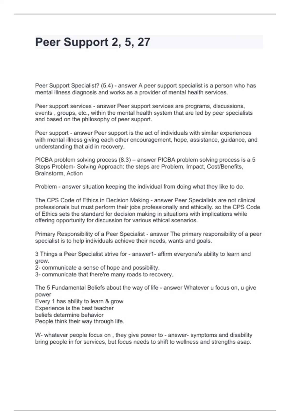 Peer Support 2, 5, 27 Questions and Answers 100% Solved