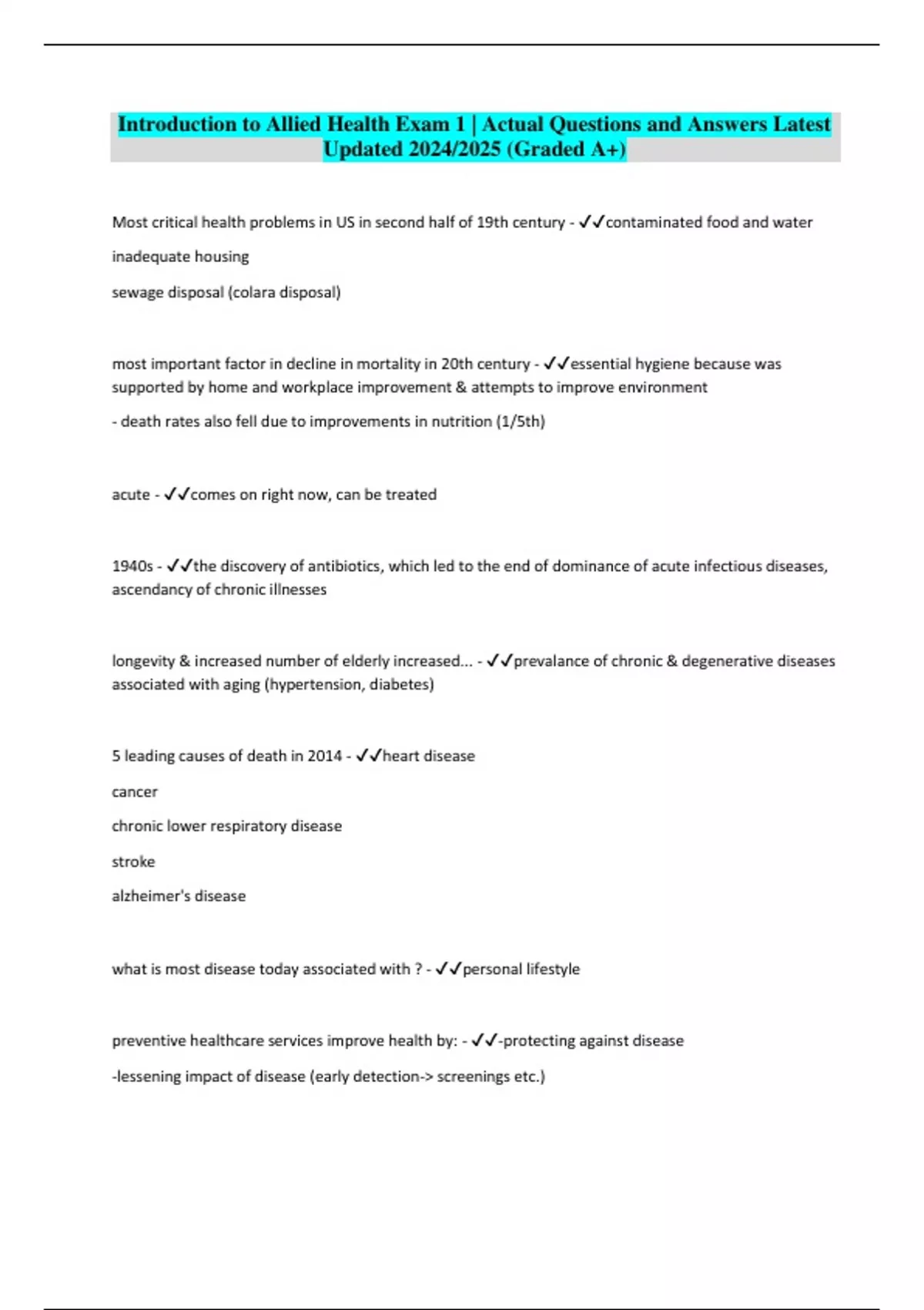 Introduction to Allied Health Exam 1 | Actual Questions and Answers Latest Updated 2024/2025 (Graded A+)