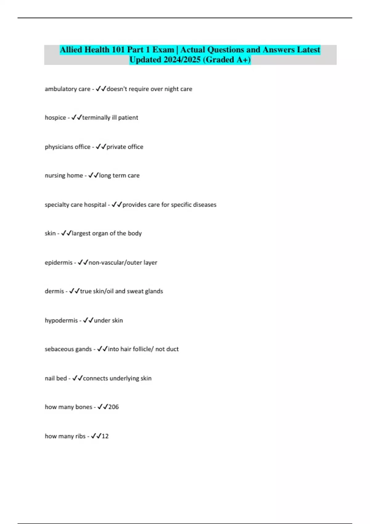 Allied Health 101 Part 1 Exam | Actual Questions and Answers Latest Updated 2024/2025 (Graded A+)