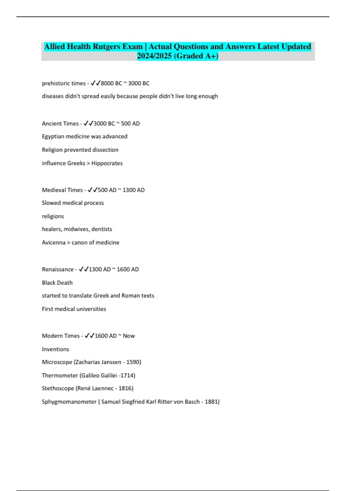 Allied Health Rutgers Exam | Actual Questions and Answers Latest Updated 2024/2025 (Graded A+)