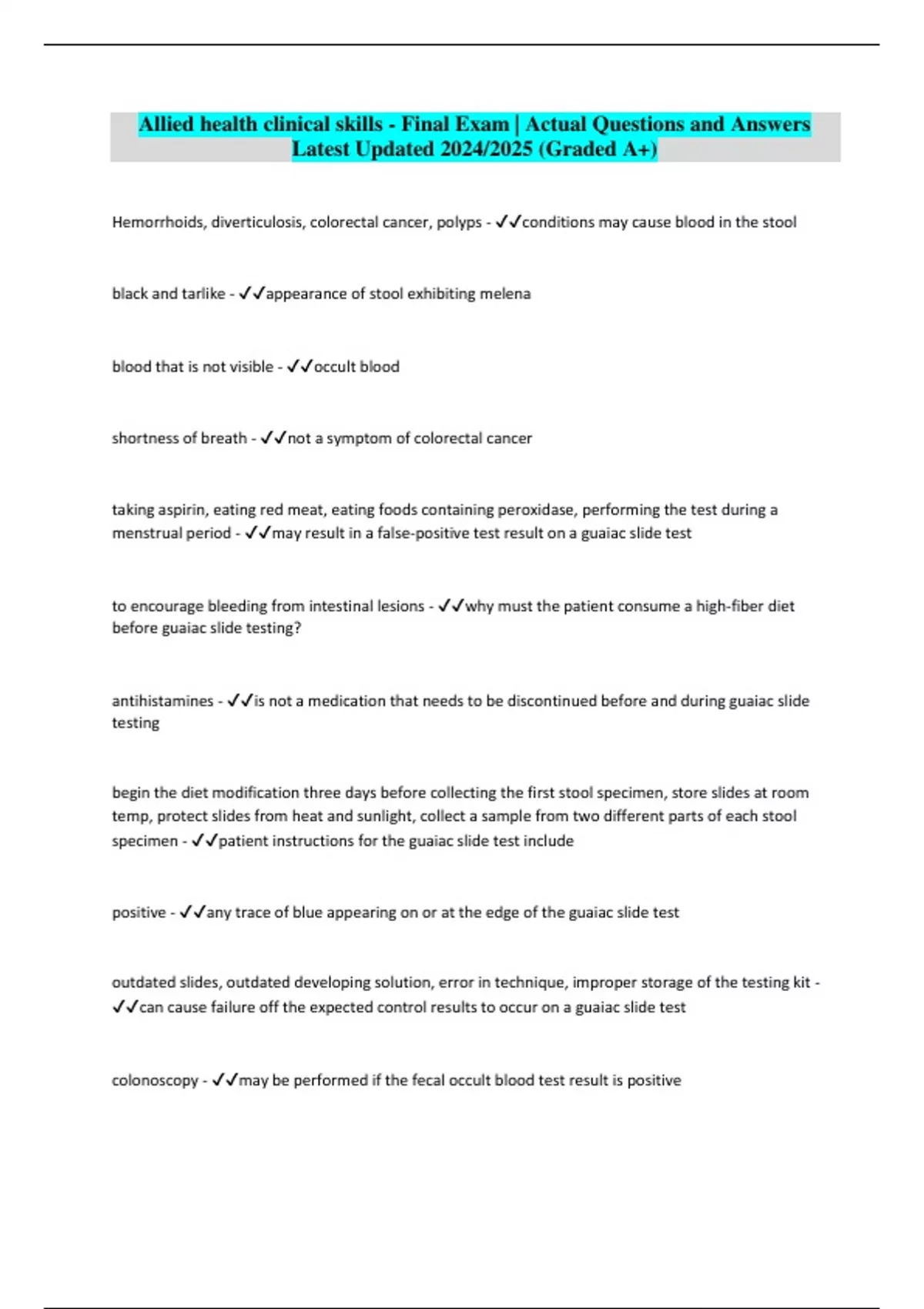 Allied health clinical skills - Final Exam | Actual Questions and Answers Latest Updated 2024/2025 (Graded A+)