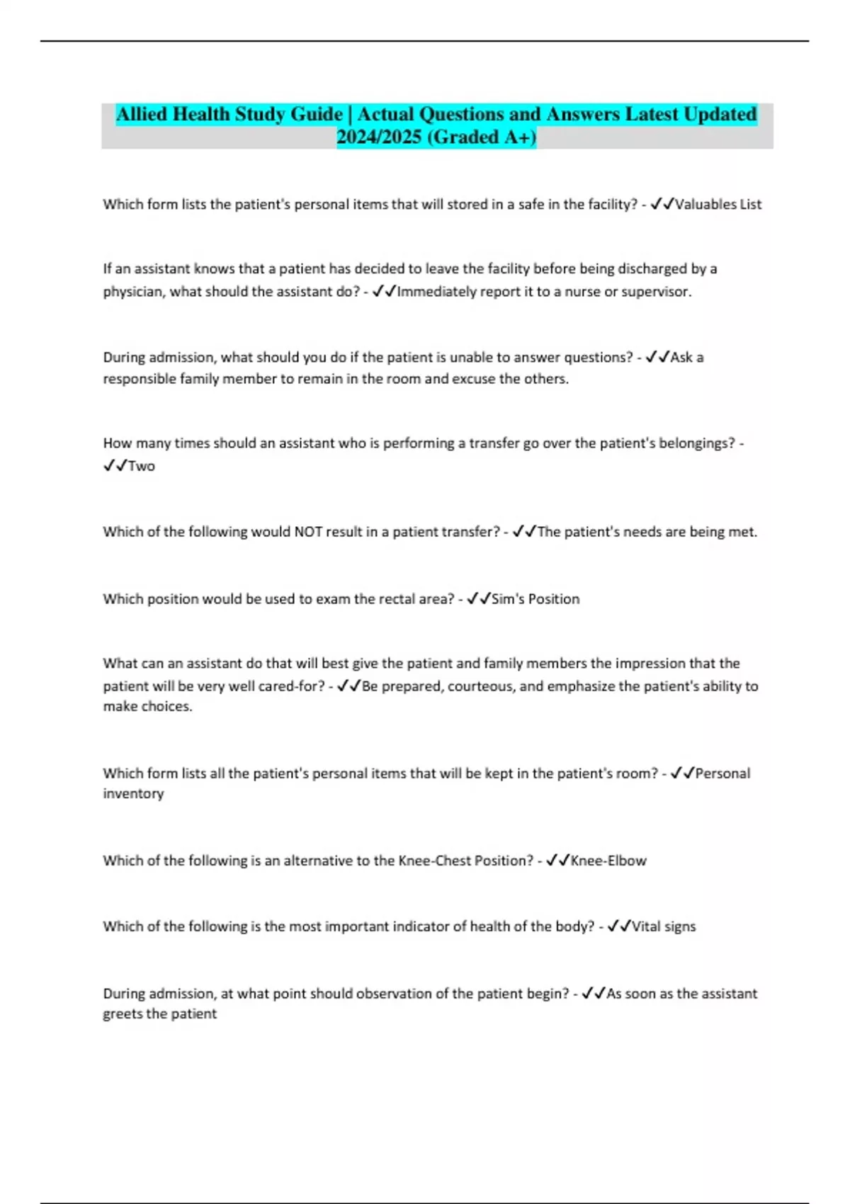 Allied Health Study Guide | Actual Questions and Answers Latest Updated 2024/2025 (Graded A+)