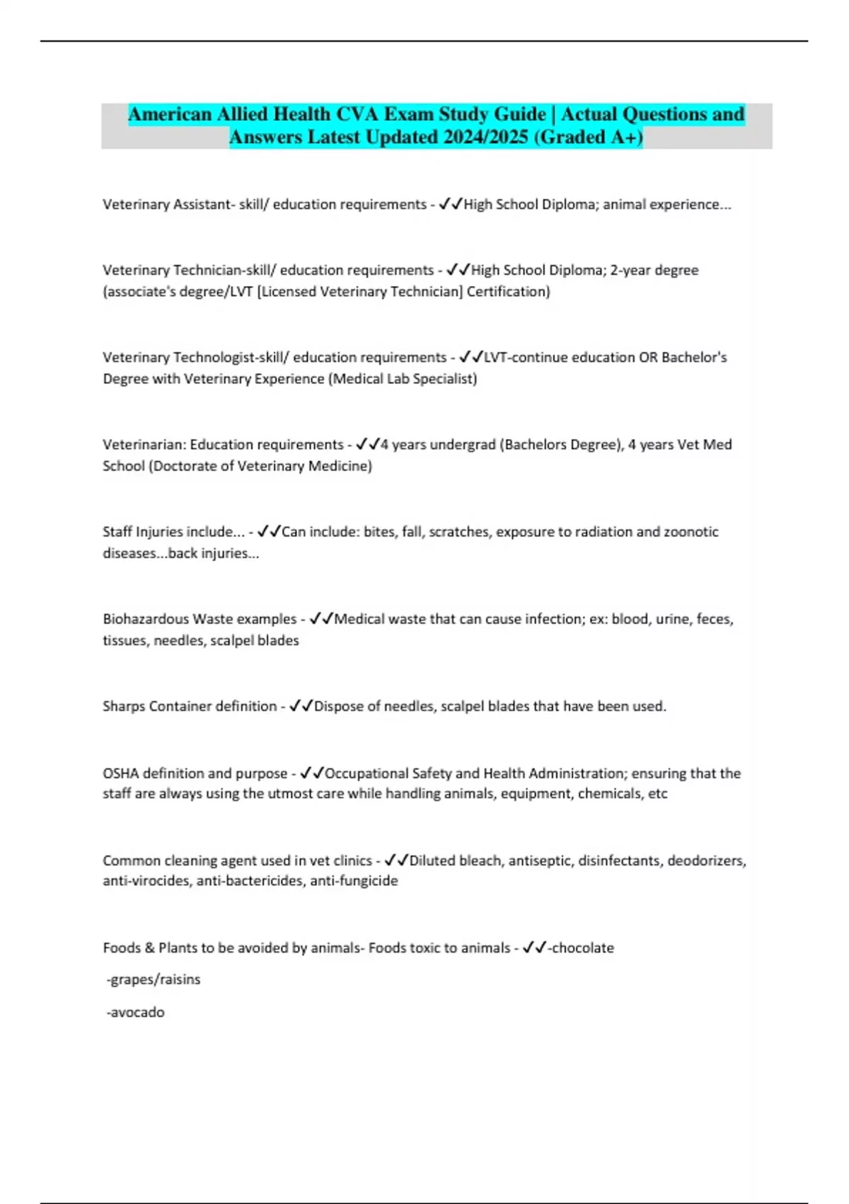 American Allied Health CVA Exam Study Guide | Actual Questions and Answers Latest Updated 2024/2025 (Graded A+)