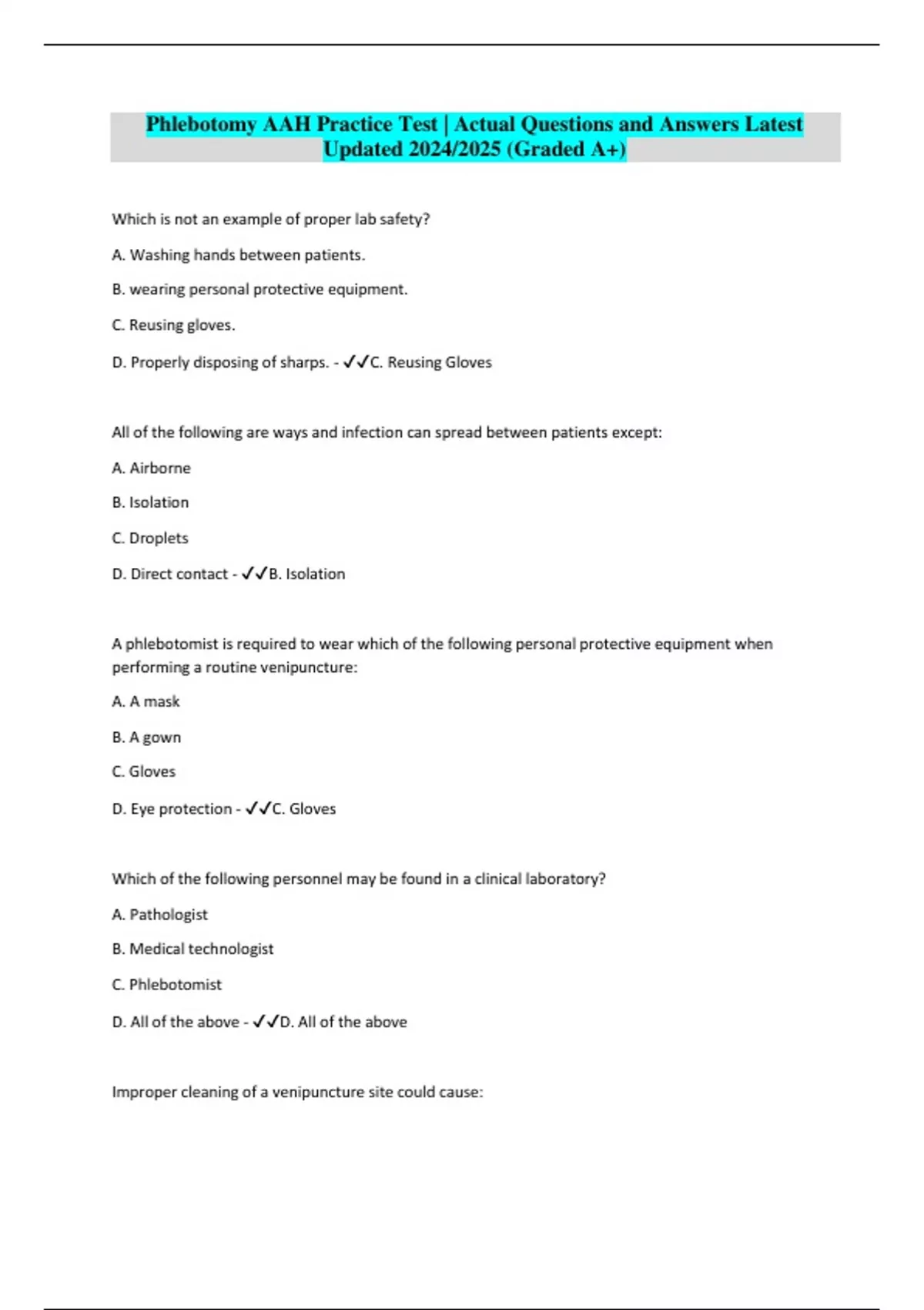 Phlebotomy AAH Practice Test | Actual Questions and Answers Latest Updated 2024/2025 (Graded A+)