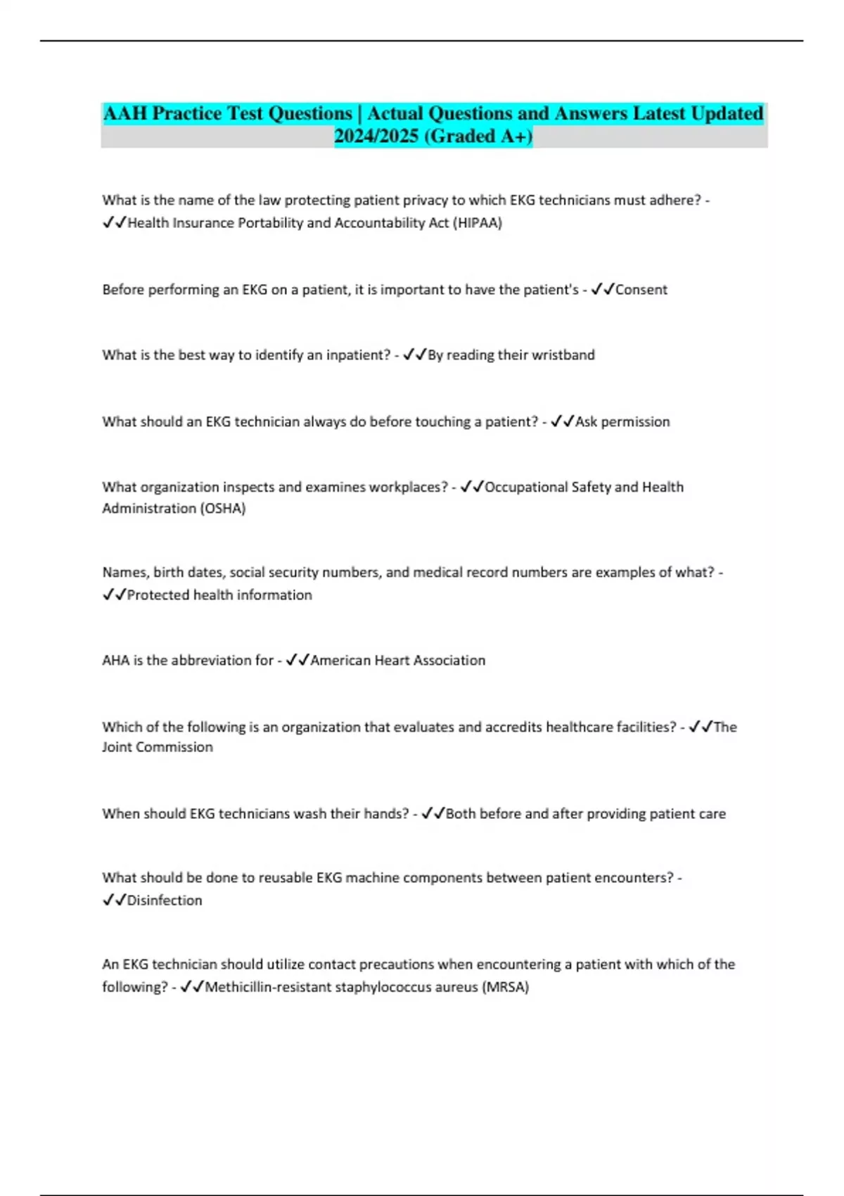 AAH Practice Test Questions | Actual Questions and Answers Latest Updated 2024/2025 (Graded A+)