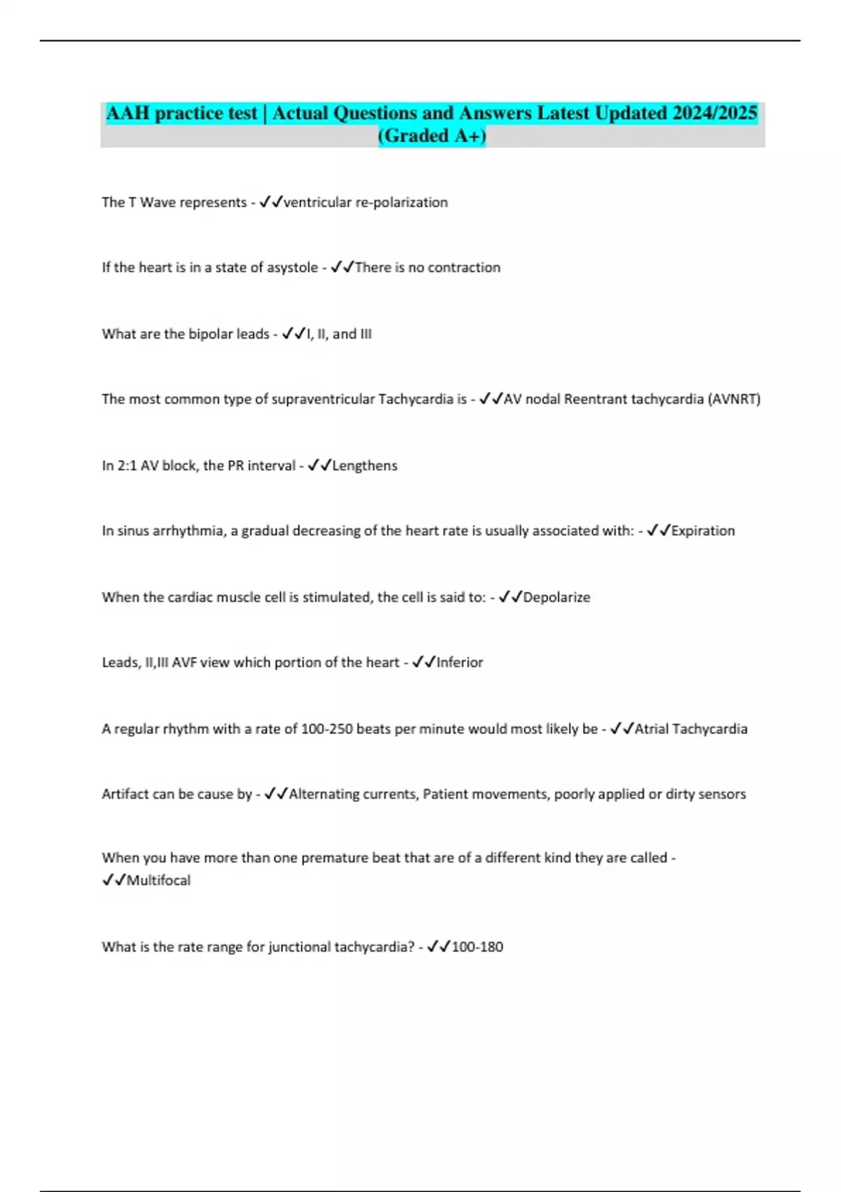 aah practice test actual questions and answers l