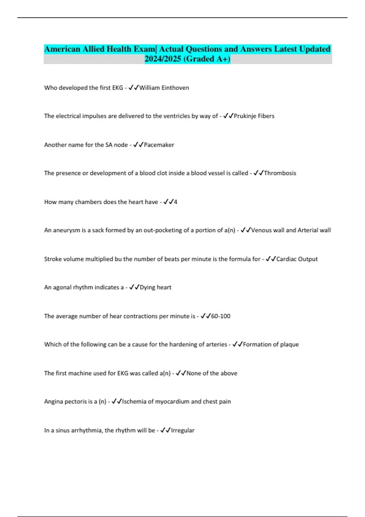 Package deal:: American Allied Health Exams | Actual Questions And Answers Latest Updated 2024/2025 (Graded A+)