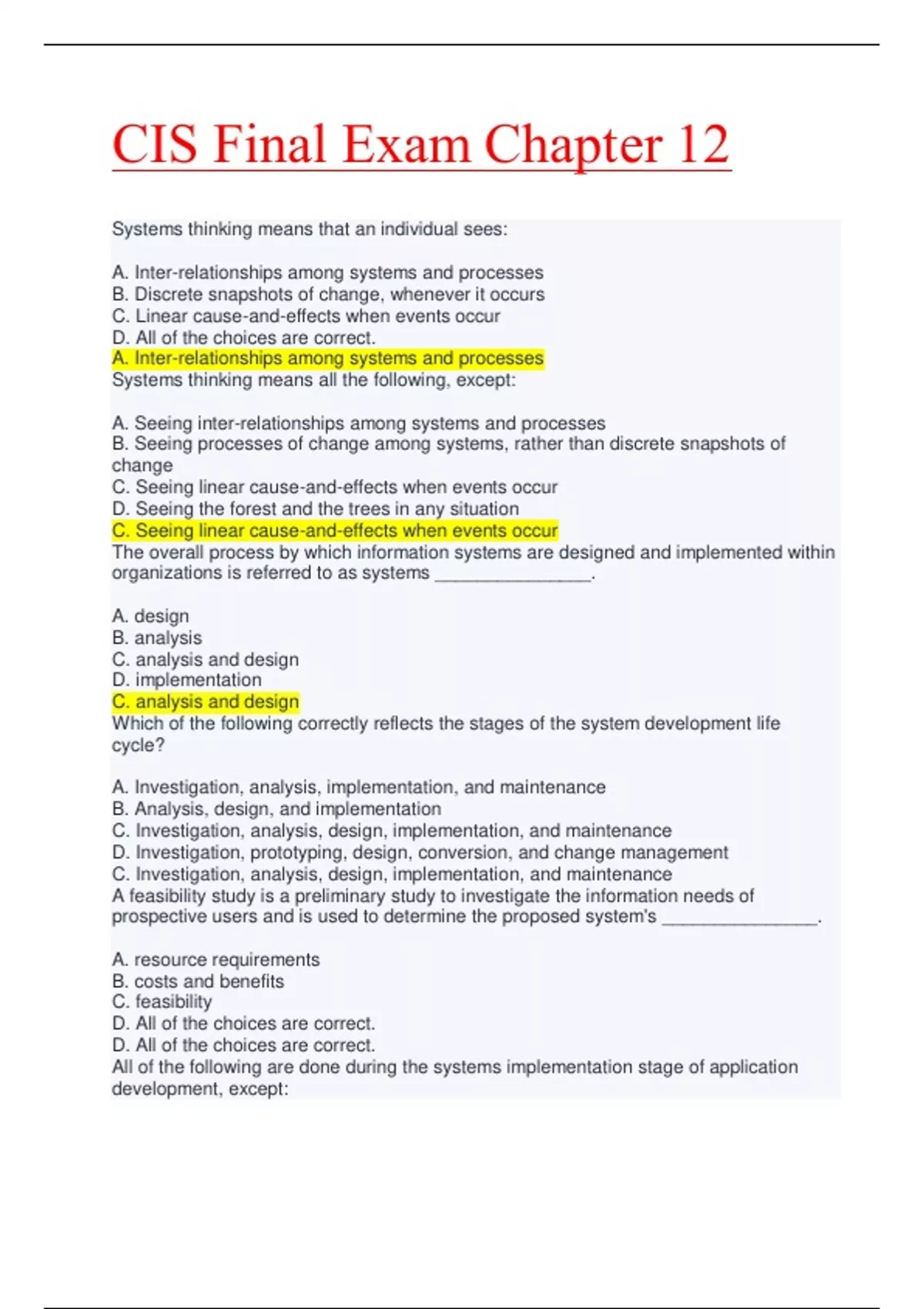 - cis final exam top mark