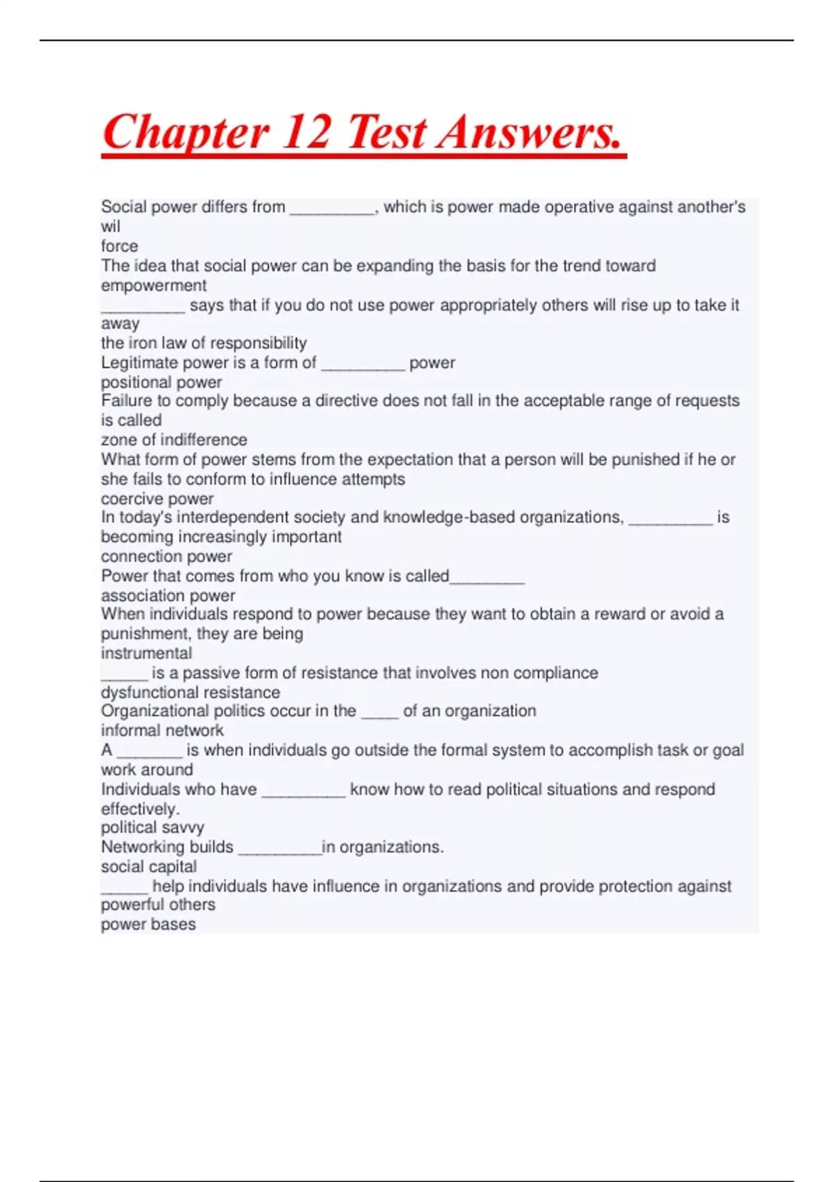 chapter 12 test answers highest score a