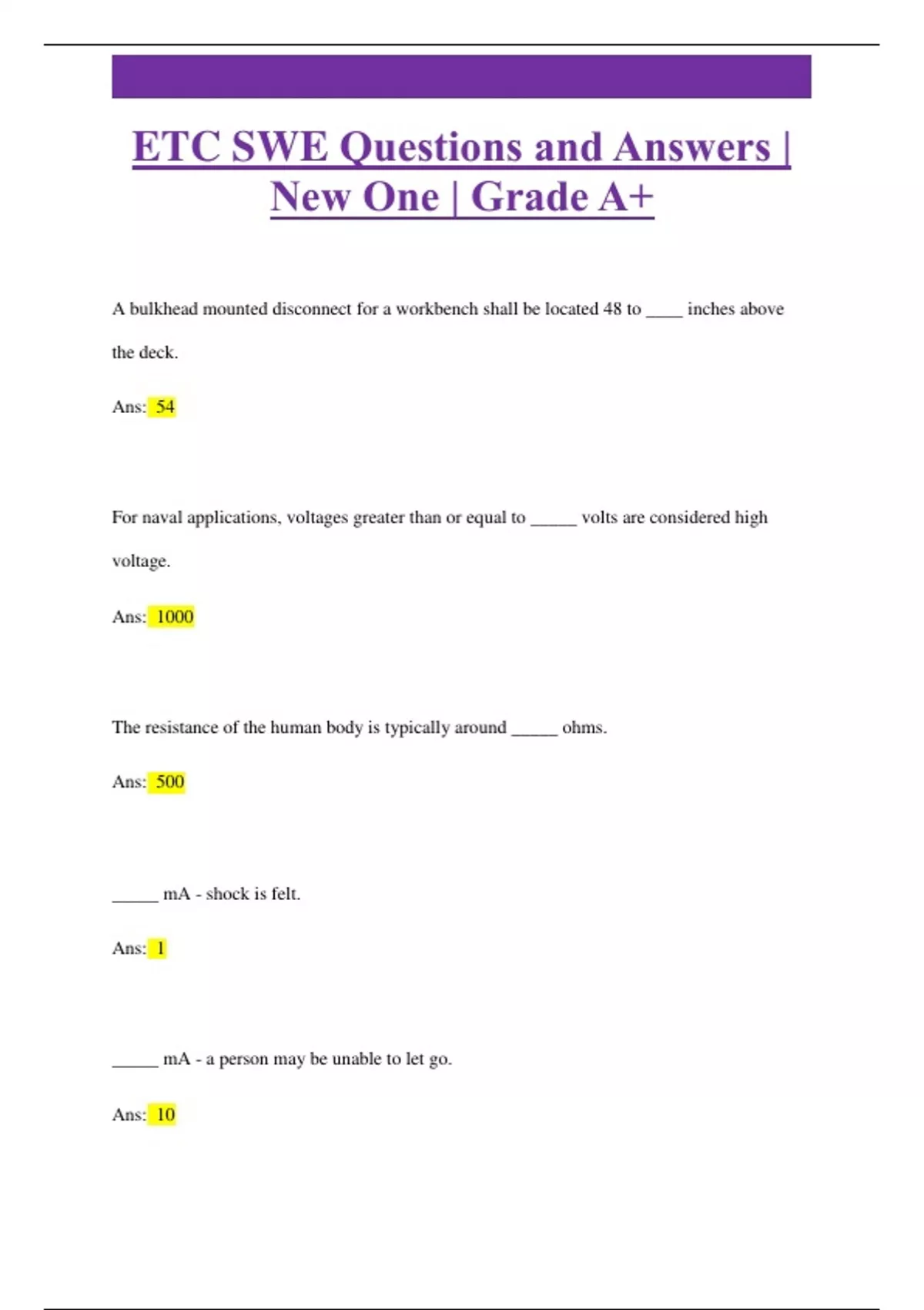 etc swe questions and answers new one grade a