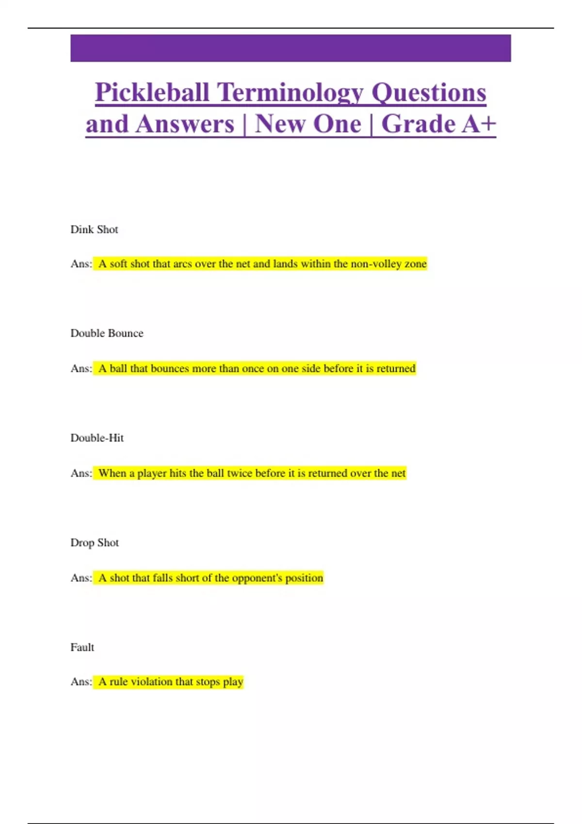 Pickleball Terminology Questions and Answers | New One | Grade A+