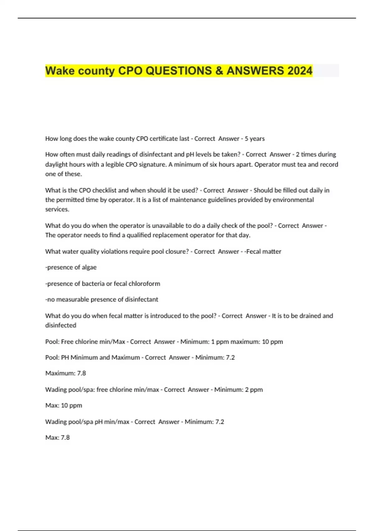 Wake county CPO QUESTIONS & ANSWERS 2024.