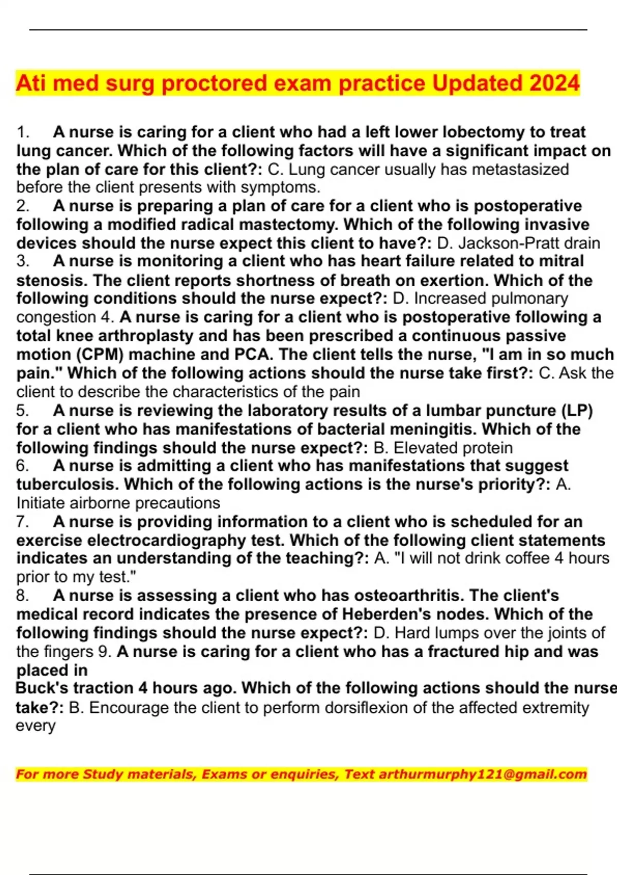 Ati med surg proctored exam practice Updated 2024