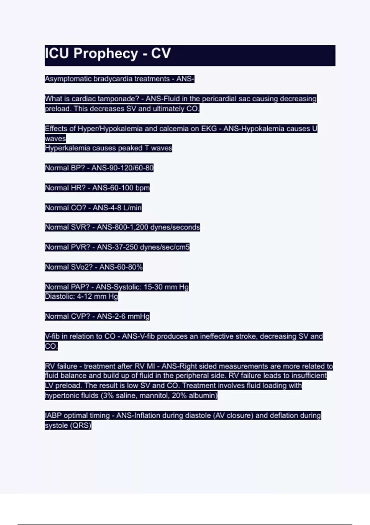 ICU Prophecy - CV Questions with 100% correct answers | verified | latest update 2024